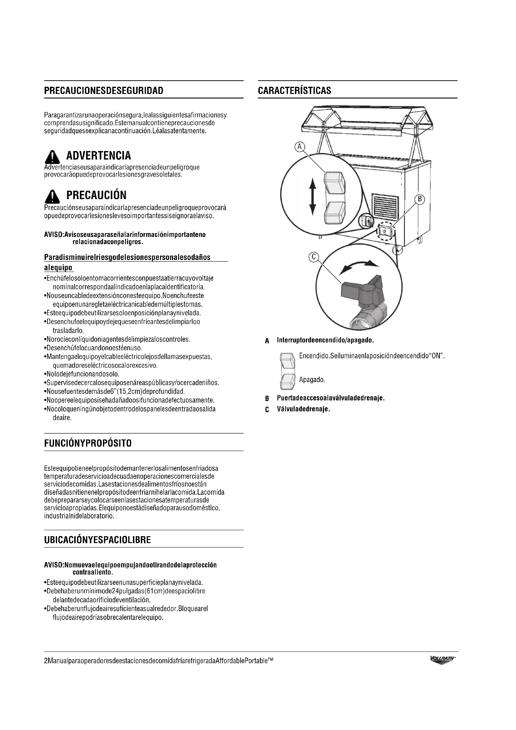 Gracias por comprar este equipo Vollrath. Antes de usar el equipo, lea y familiaricese con lassiguientes instruccionedes operacion y seguidad. CONSERVEESTASINSTRUCCIONESCOMOREFERENCIAPARAELFUTURO.