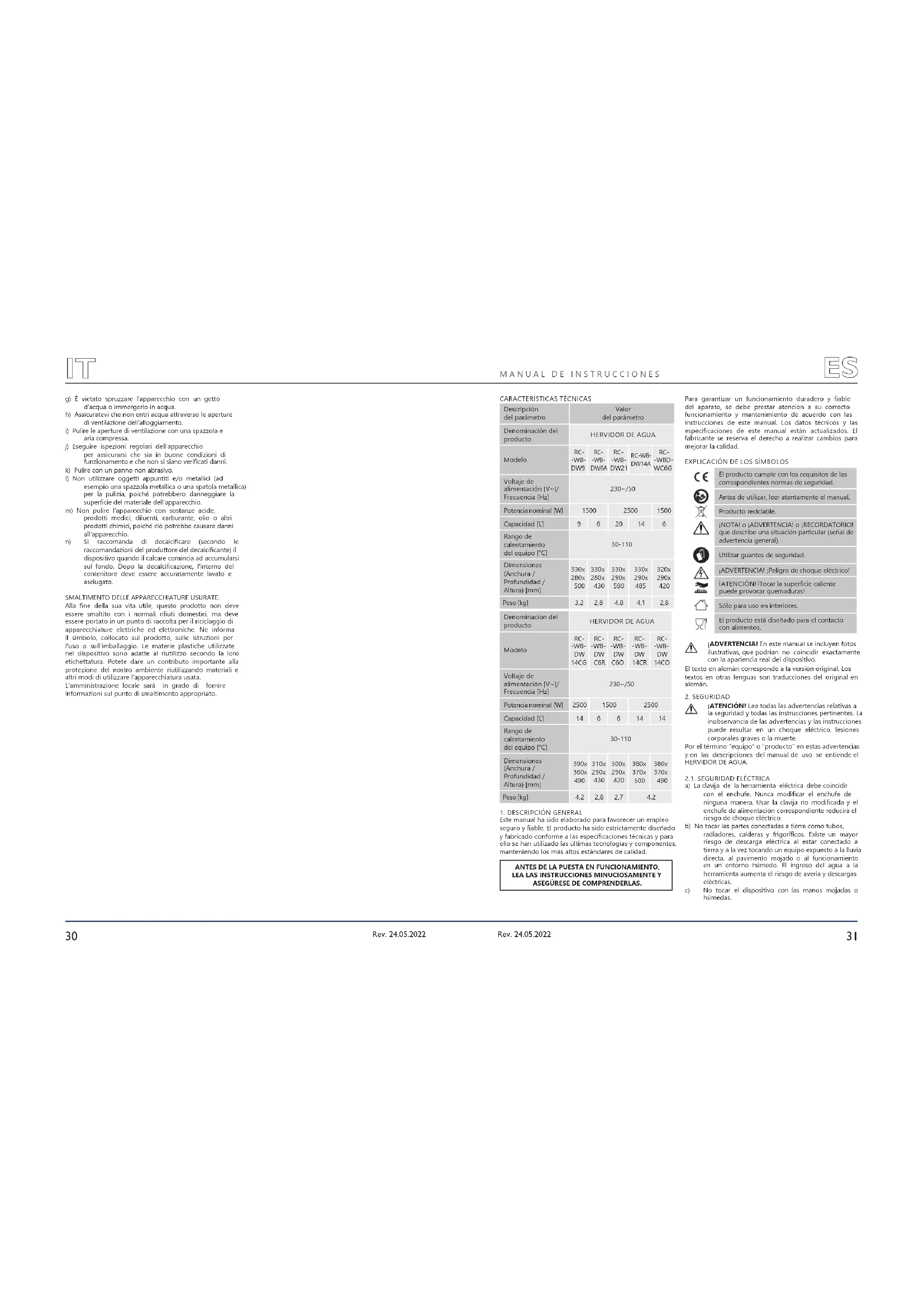 ASEGÚRESE DE COMPRENDERLAS. Para garantizar un funcionamiento duradero y able del aparato, se debe prestar atención a su correcto funcionamiento y mantenimiento de acuerdo con las instrucciones de este manual. Los datos técnicos y las especicaciones de este manual están actualizados. El fabricante se reserva el derecho a realizar cambios para mejorar la calidad.