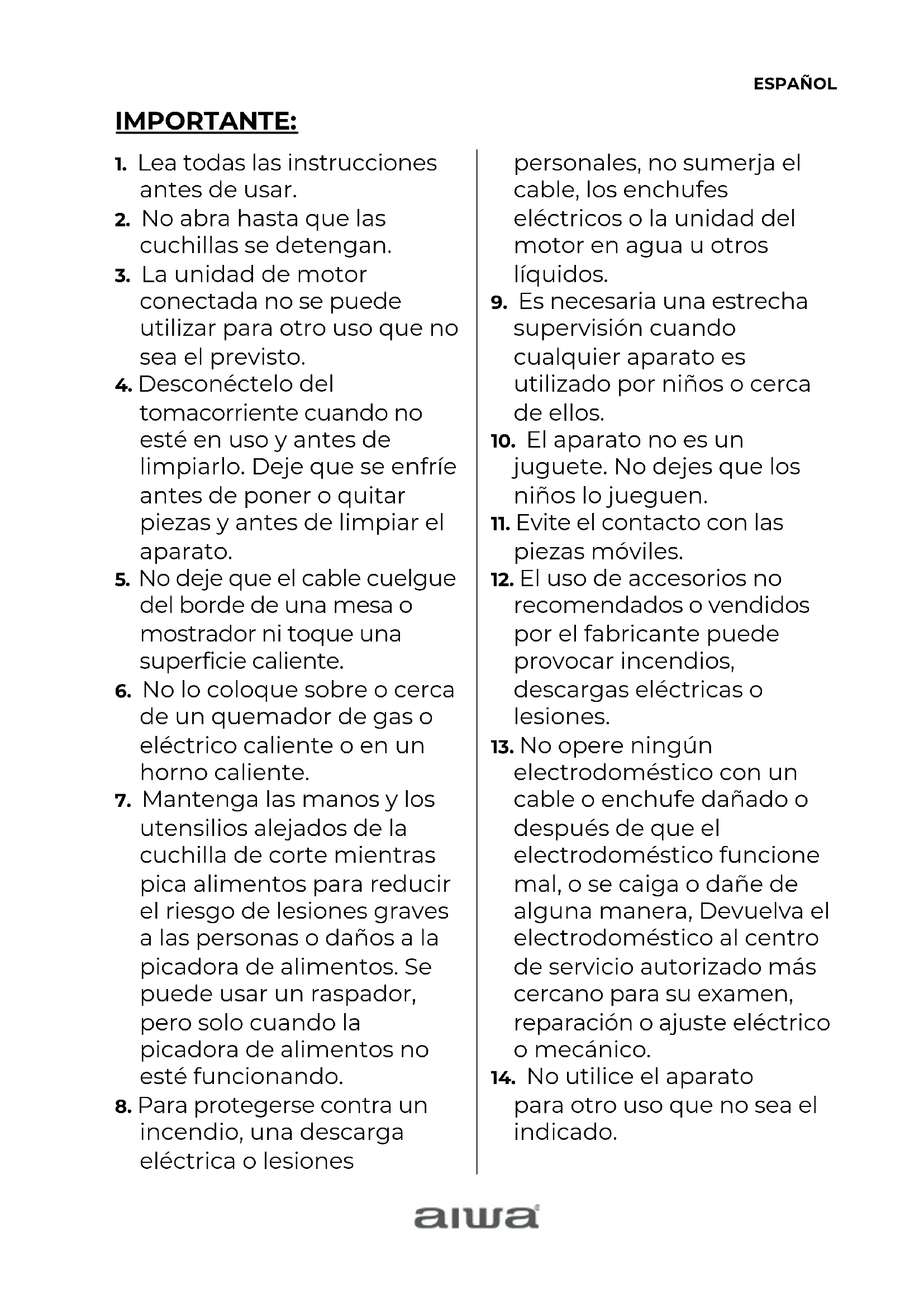 RINSAKU ACP500 - Trituradora mecánica AIWA - Manual de uso y guía de instrucciones gratis
