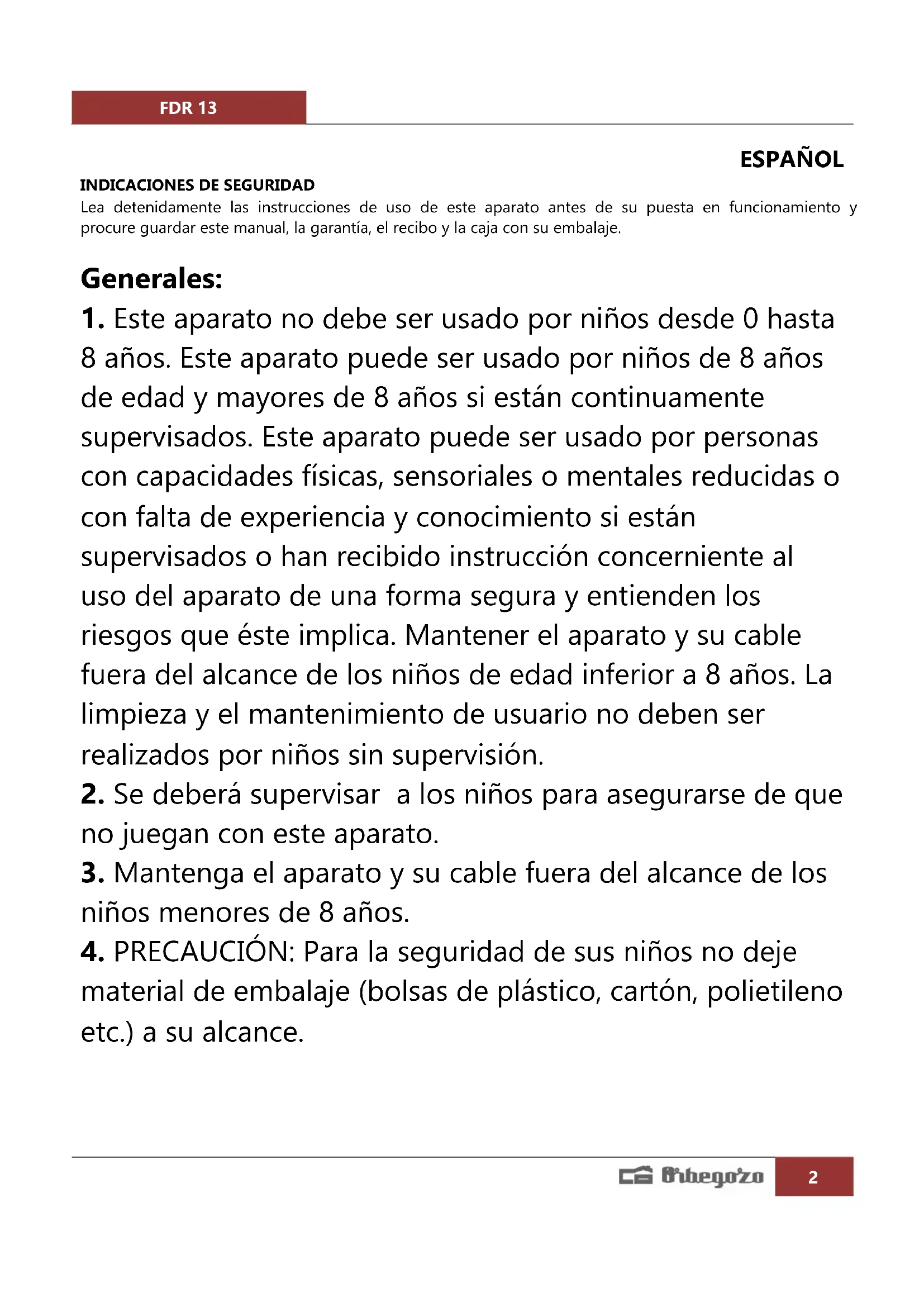 MANUAL DE USUARIO FDR 13 Orbegozo