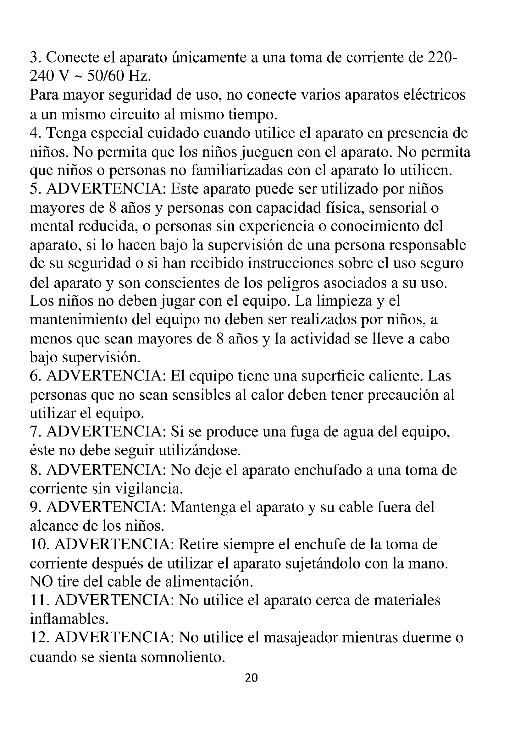 20. No utilice nunca el masajeador si tiene heridas abiertas en los