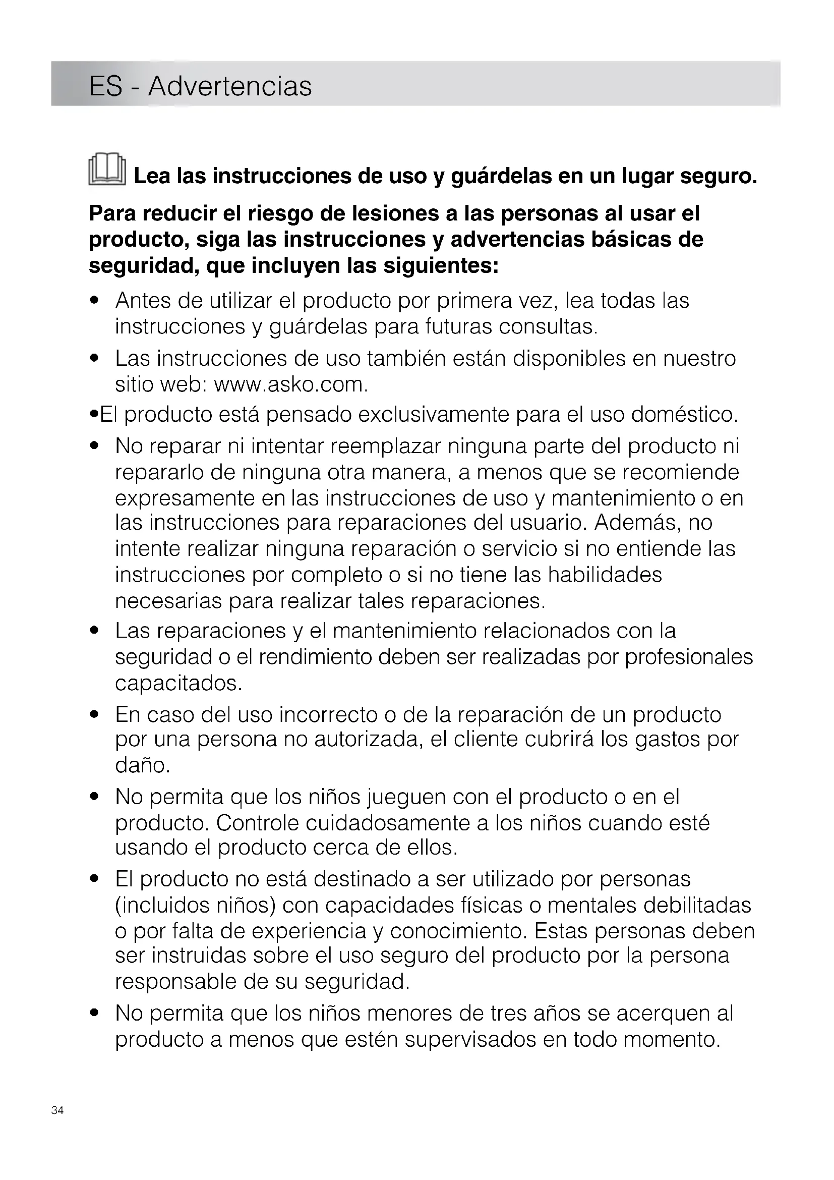 - Las instrucciones de uso también están disponibles en nuestro sitio web: www.asko.com.