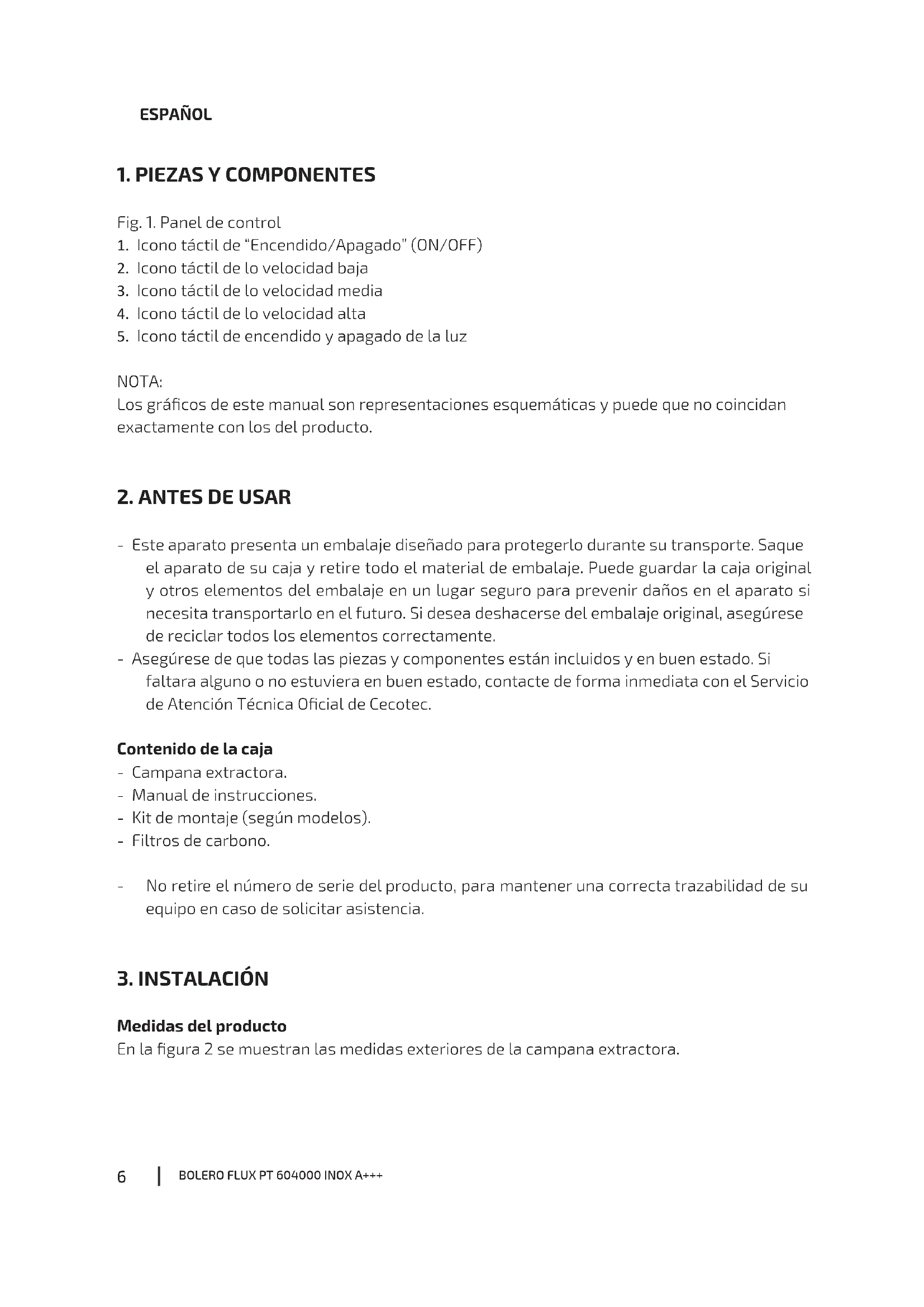 MANUAL DE USUARIO Bolero Flux PT 604000 Inox A+++ CECOTEC