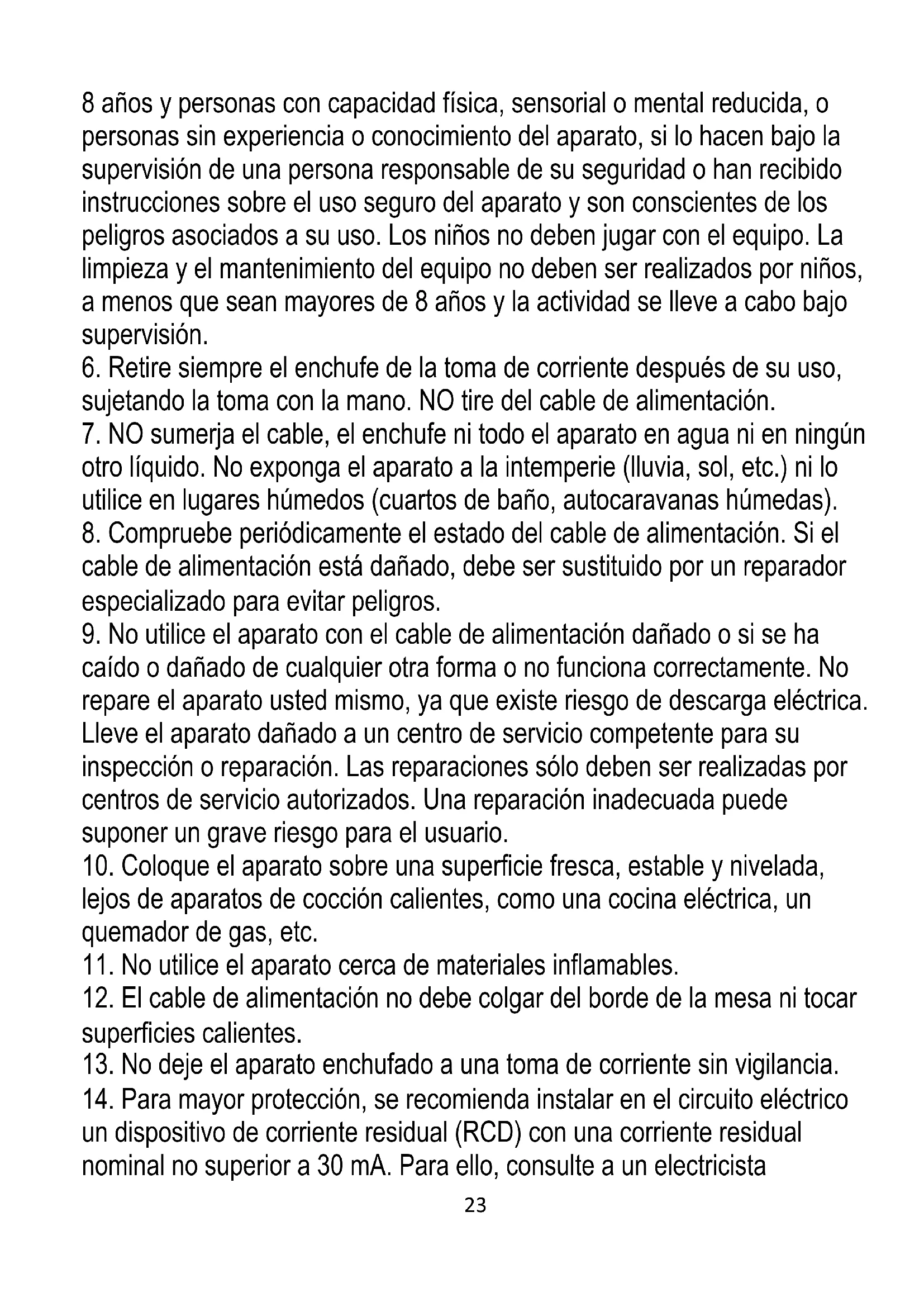 5. ADVERTENCIA: Este aparato puede ser utilizado por niños mayores de23