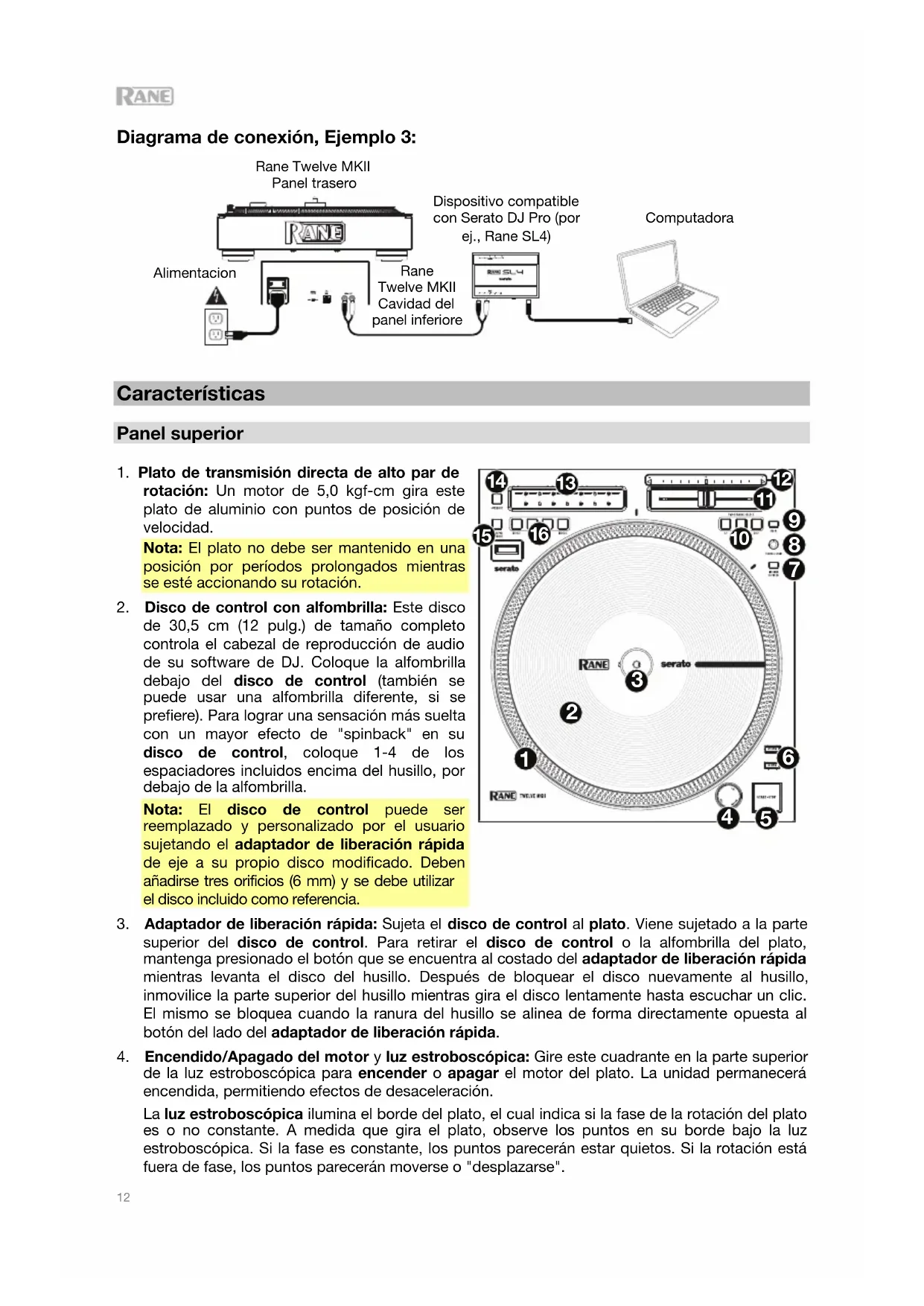 Twelve MKII - Equipo de DJ Rane - Manual de uso y guía de instrucciones gratis