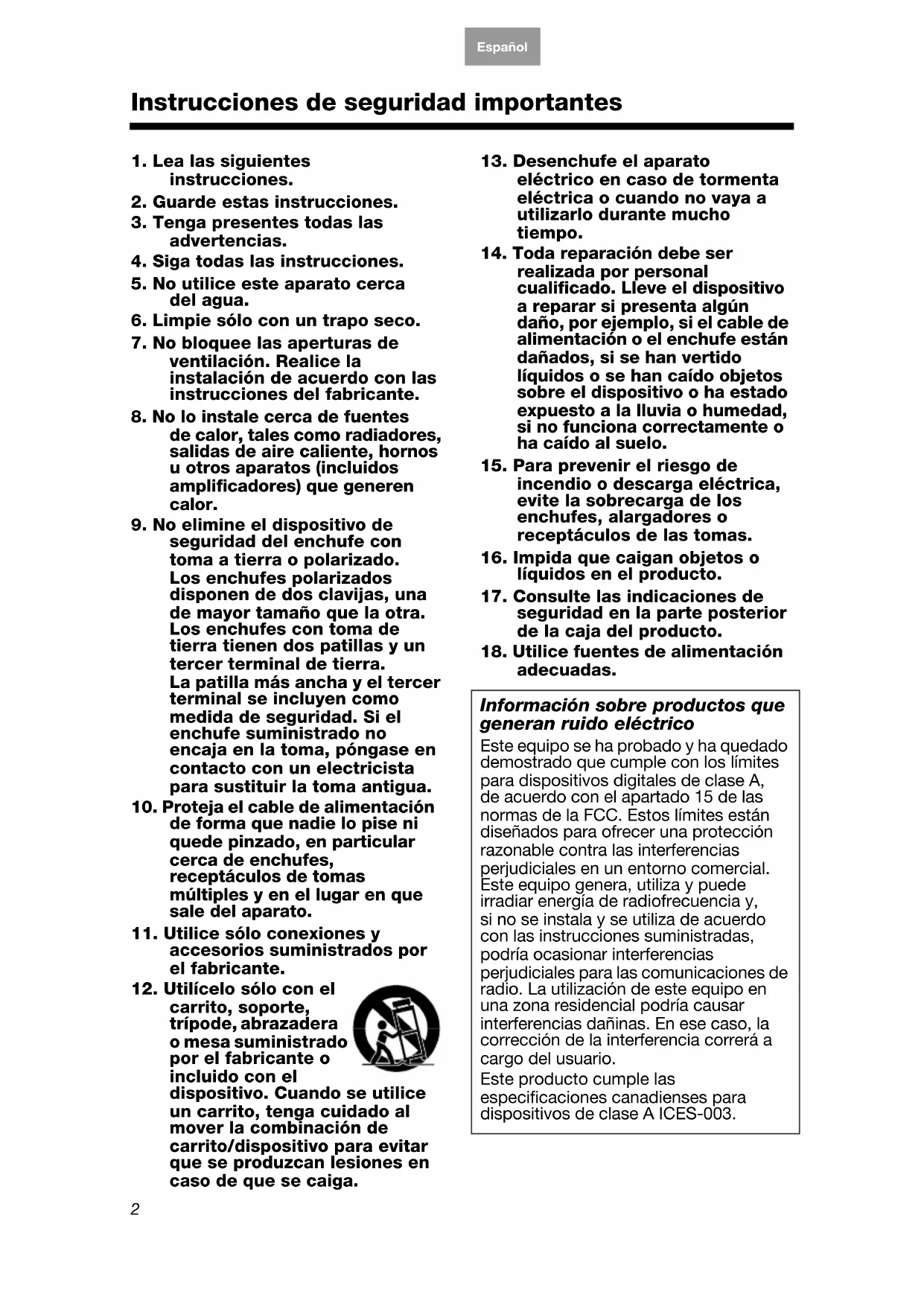 adecuadas. Información sobre productos que generan ruido eléctrico Este equipo se ha probado y ha quedado demostrado que cumple con los límites para dispositivos digitales de clase A,