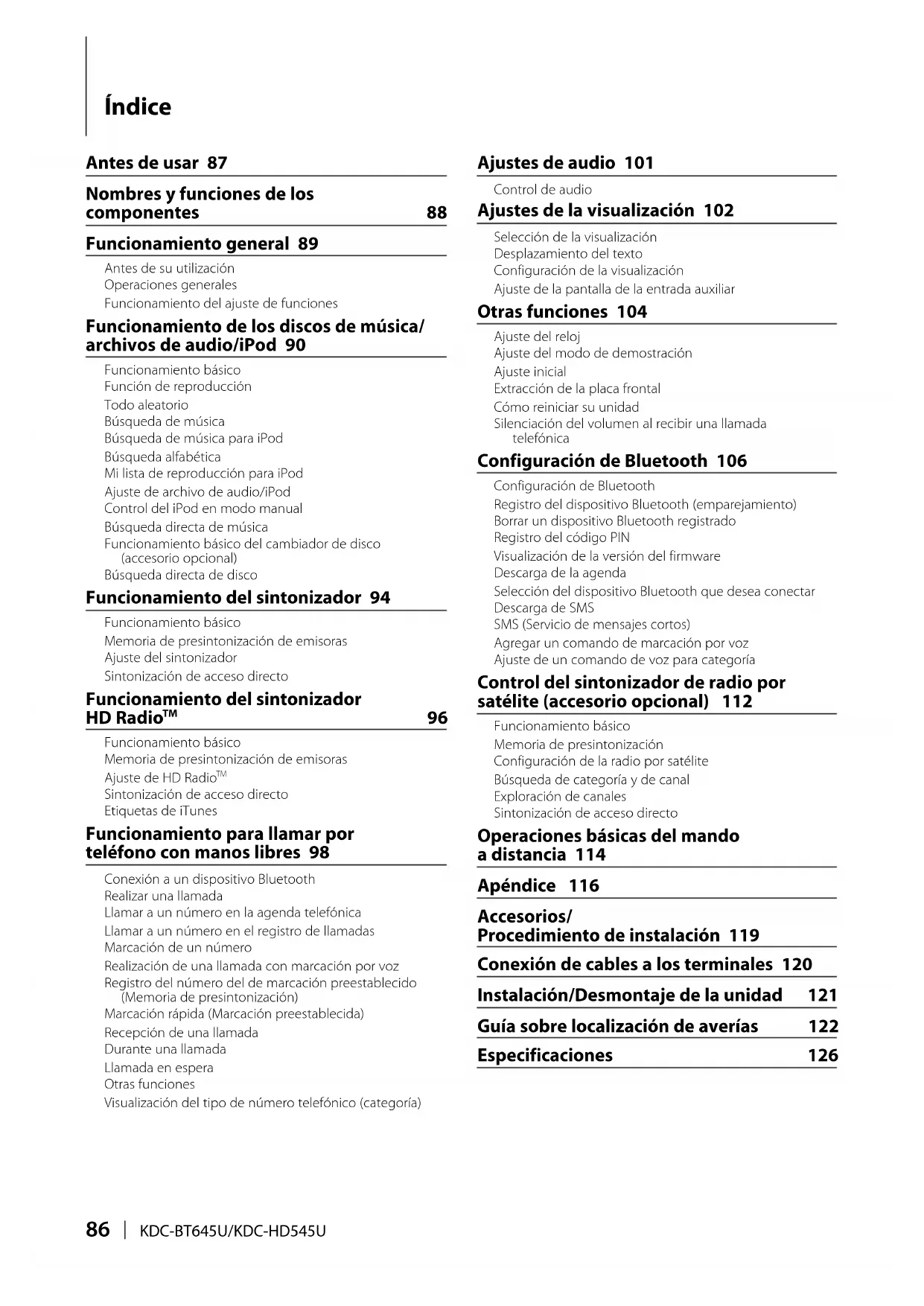 Sección Bluetooth (KDC-BT645U)