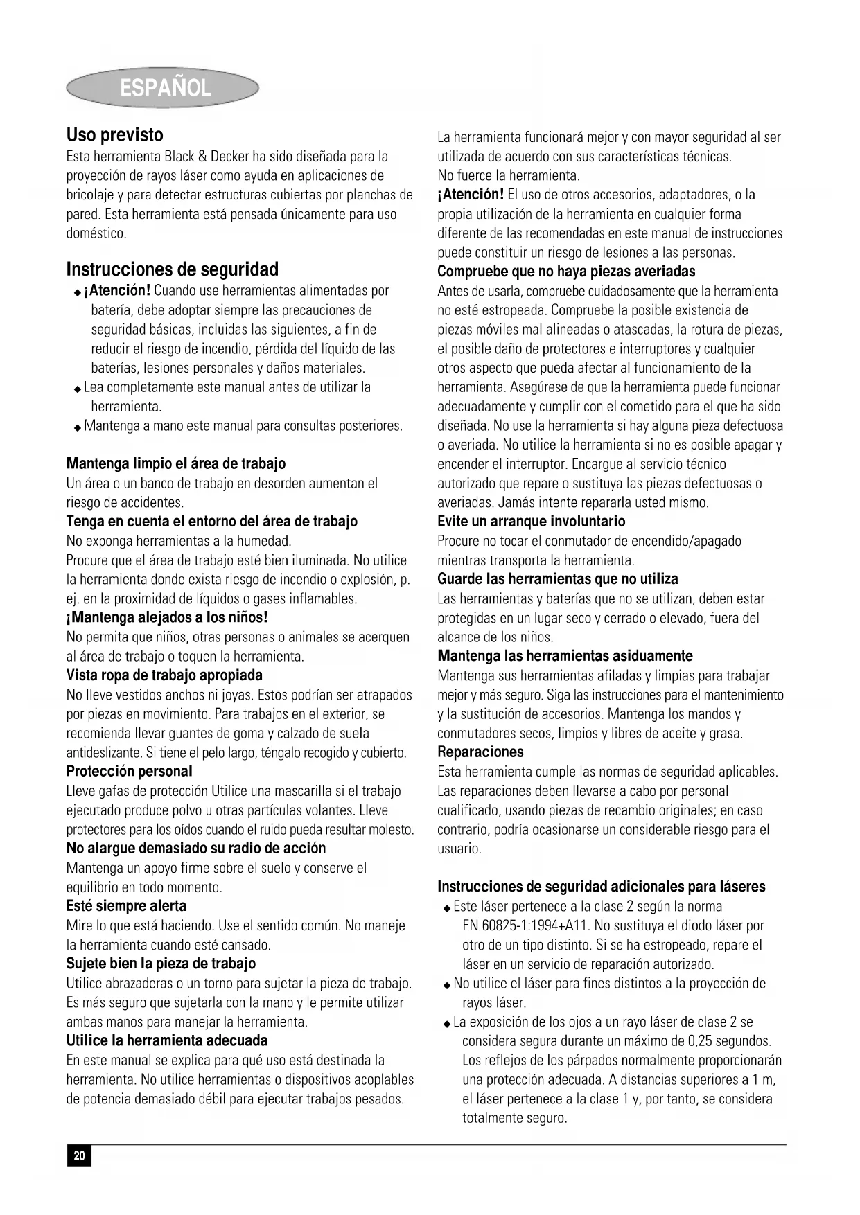 Descarga las instrucciones para tu Sin categoría en formato PDF gratis! Encuentra tus instrucciones LZR1 - BLACK & DECKER y toma tu dispositivo electrónico nuevamente en la mano. En esta página están publicados todos los documentos necesarios para el uso de su dispositivo. LZR1 de la marca BLACK & DECKER.