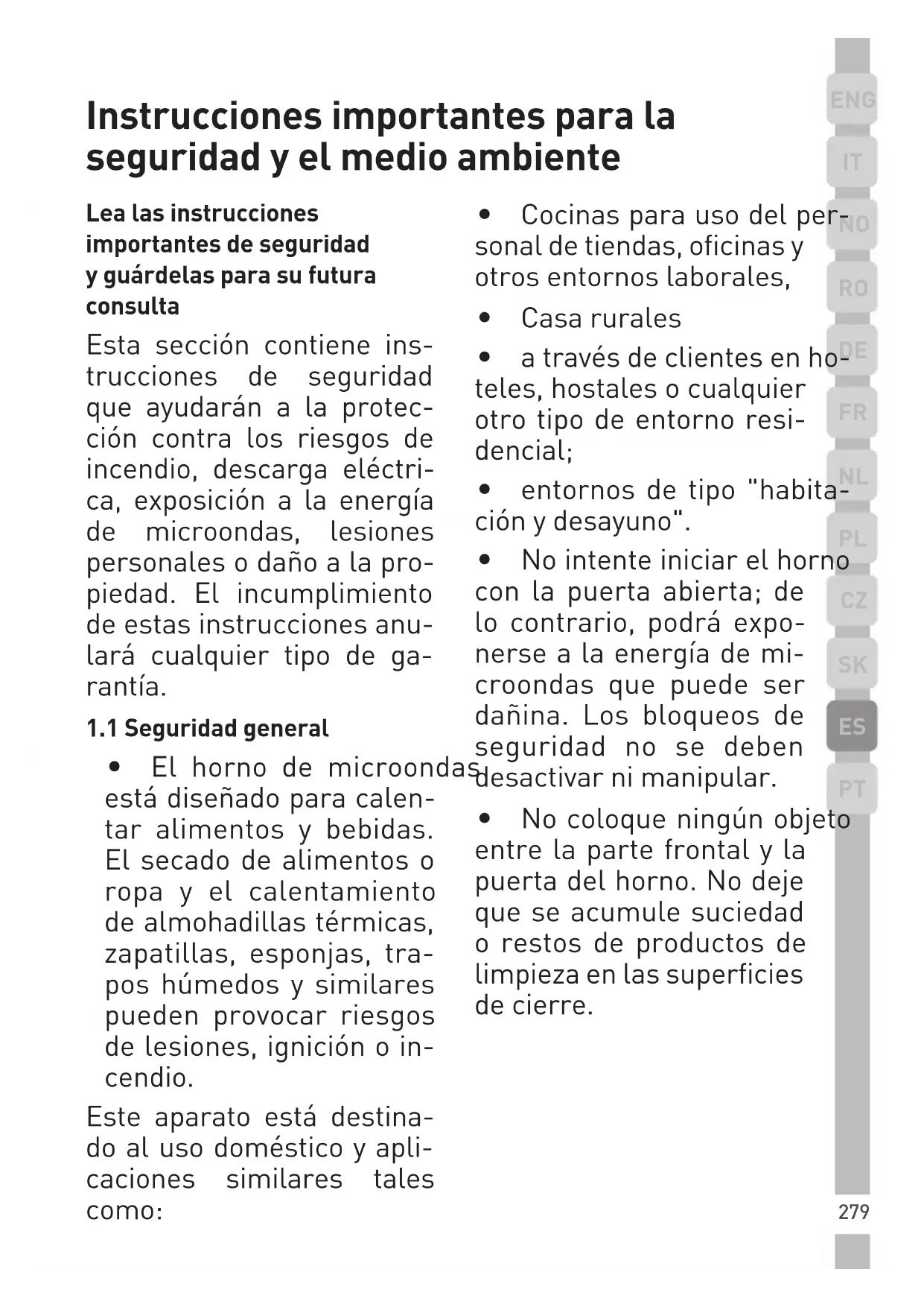 - No lo utilice como una fuente de calor.286 Instrucciones importantes para la seguridad y el medio ambiente