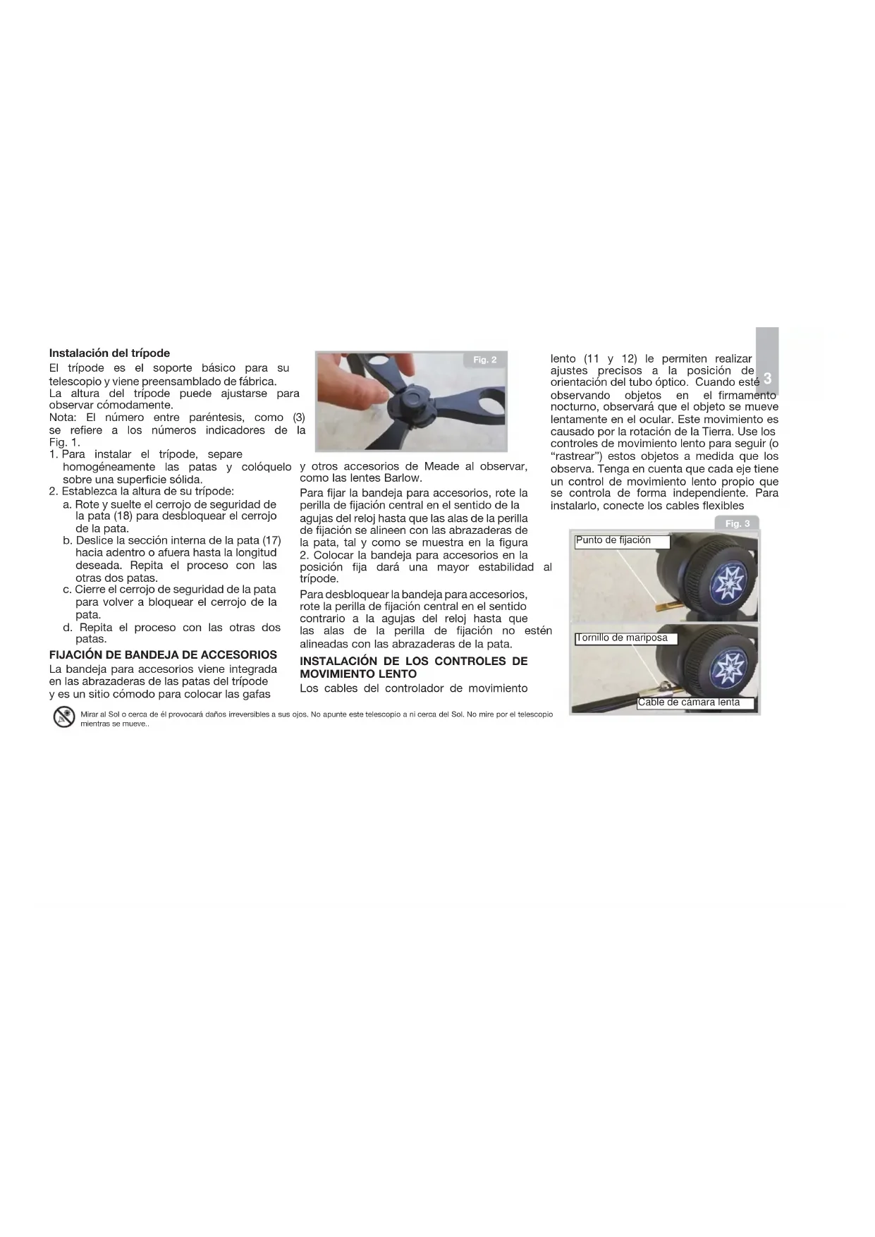 Mirar al SolVJLYJHKLtSWYV]VJHYmKH|VZirreversibles a sus ojos. No apunte este telescopio a ni cerca del Sol. No mire por el telescopio mientras se mueve.Modelo StarPro