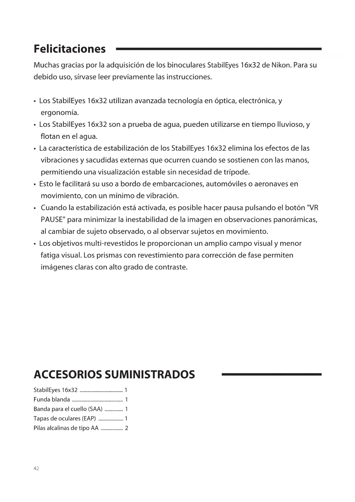 Encuentra gratis el manual del aparato StabilEyes 16x32 NIKON en formato PDF.