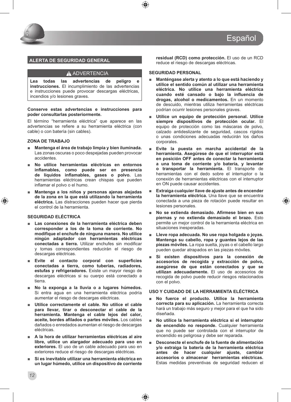 DGYHUWHQFLDV VH UH¿HUH D VX KHUUDPLHQWD HOpFWULFD FRQ FDEOH RFRQEDWHUtD VLQFDEOHV SEGURIDAD PERSONAL