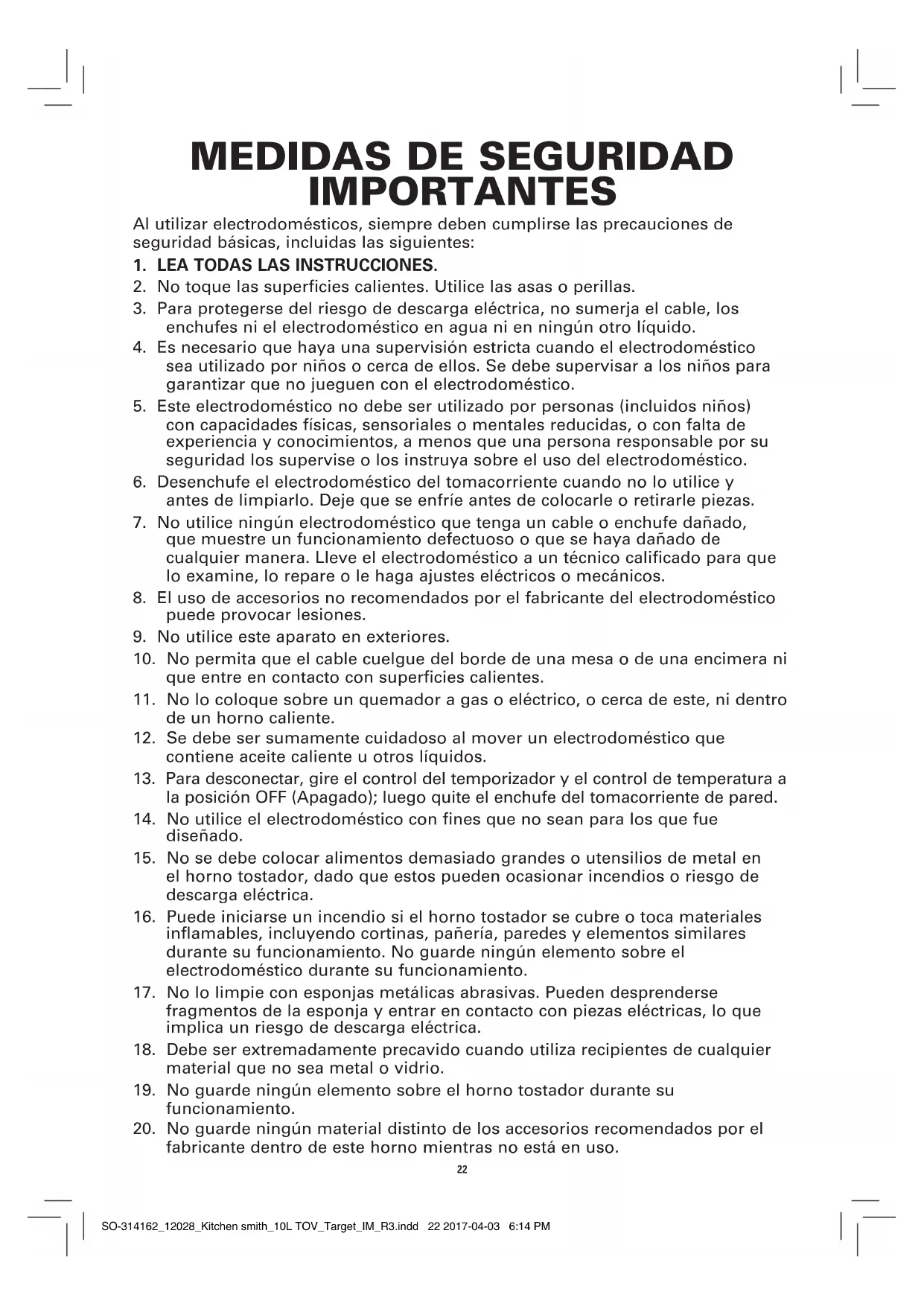 fabricante dentro de este horno mientras no está en uso. SO-314162_12028_Kitchen smith_10L TOV_Target_IM_R3.indd 22 2017-04-03 6:14 PM23