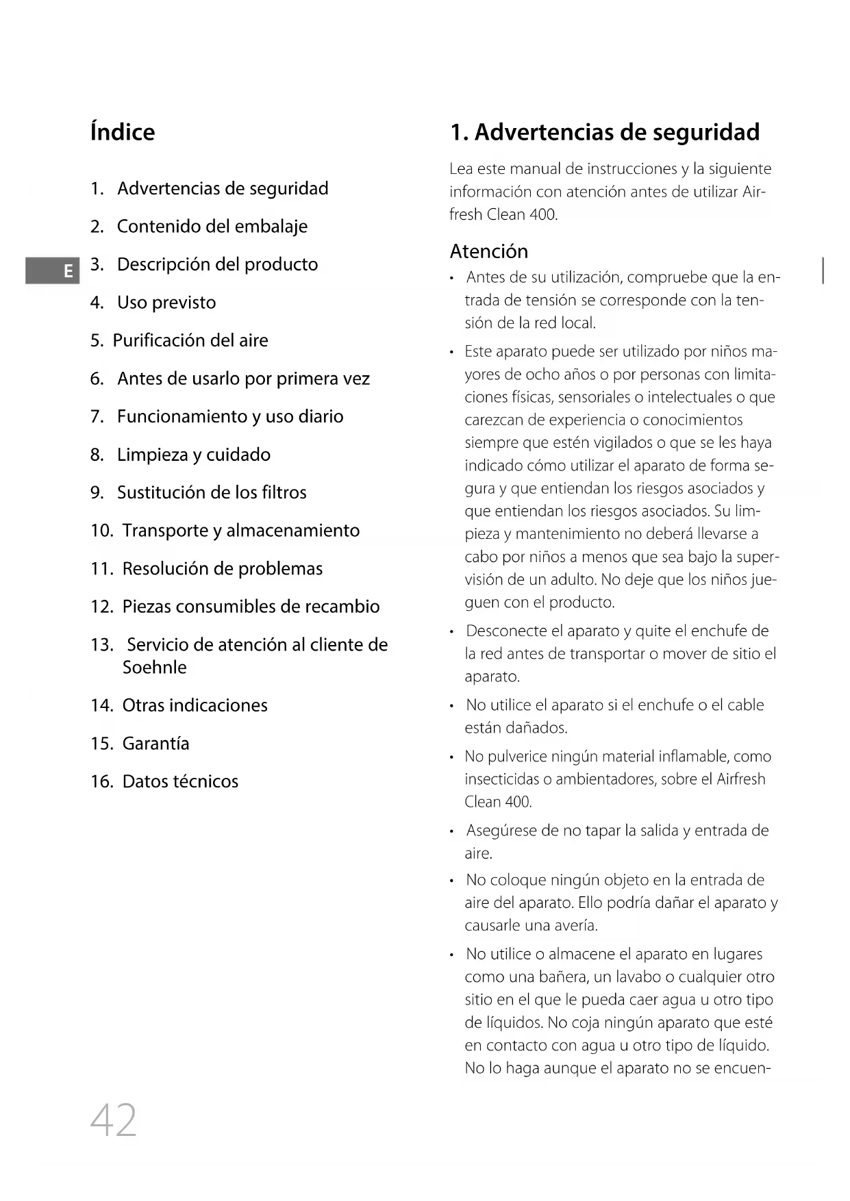 MANUAL DE USUARIO Airfresh Clean 400 SOEHNLE