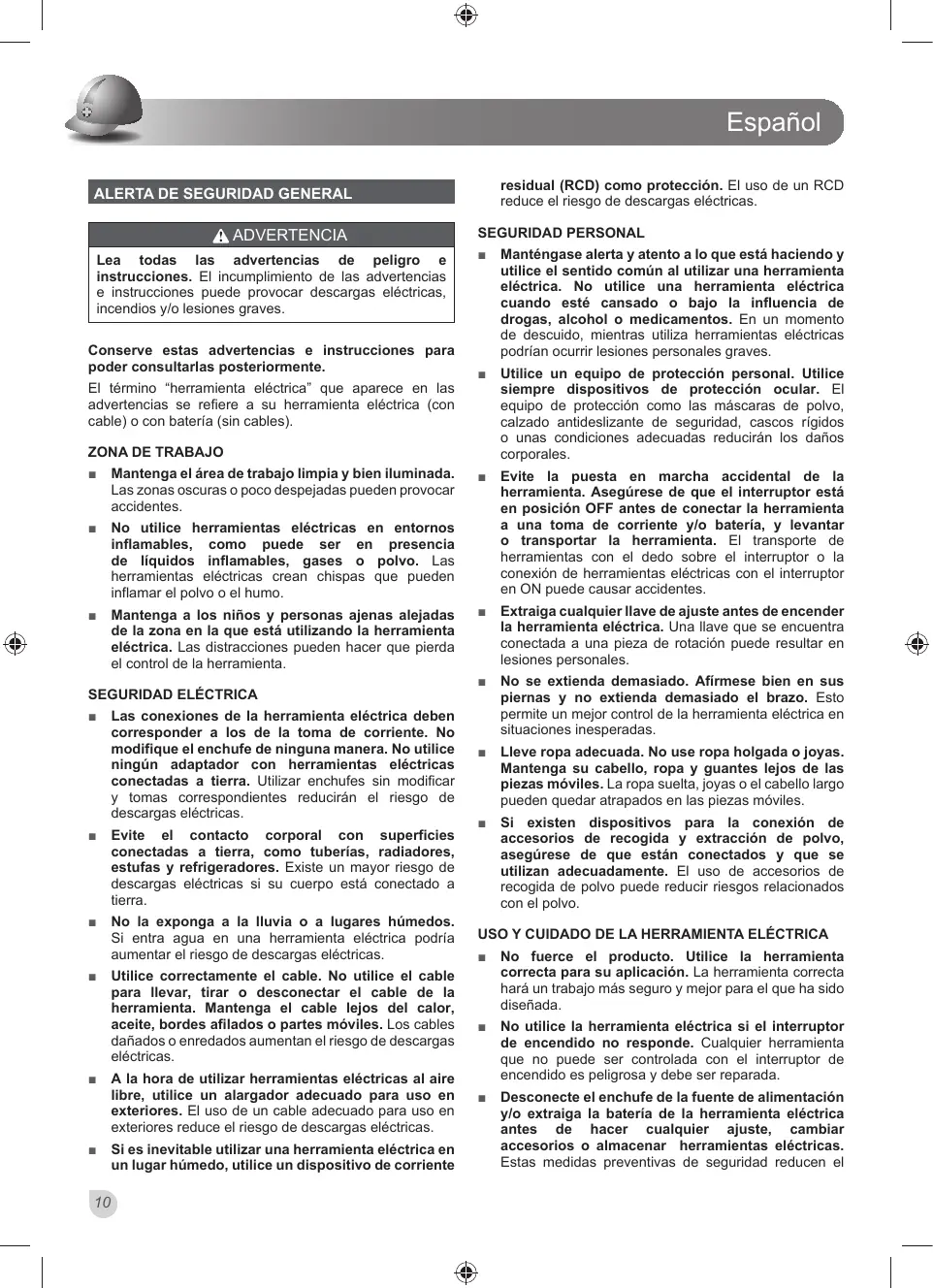 Conserve estas advertencias e instrucciones para poder consultarlas posteriormente. El término “herramienta eléctrica” que aparece en las advertencias se re¿ere a su herramienta eléctrica (con cable) o con batería (sin cables).
