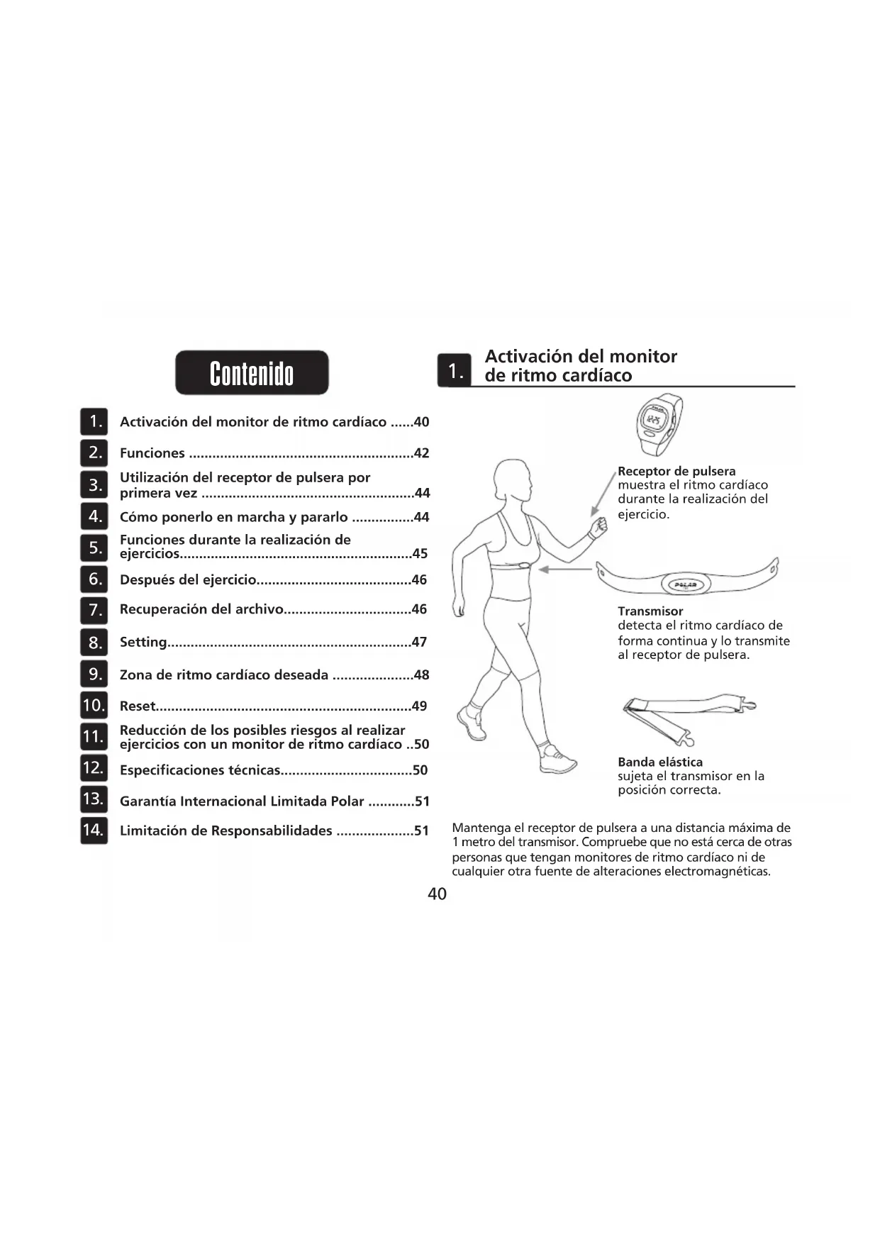 - Reducción de los posibles riesgos al realizarejercicios con un monitor de ritmo cardíaco p. 50