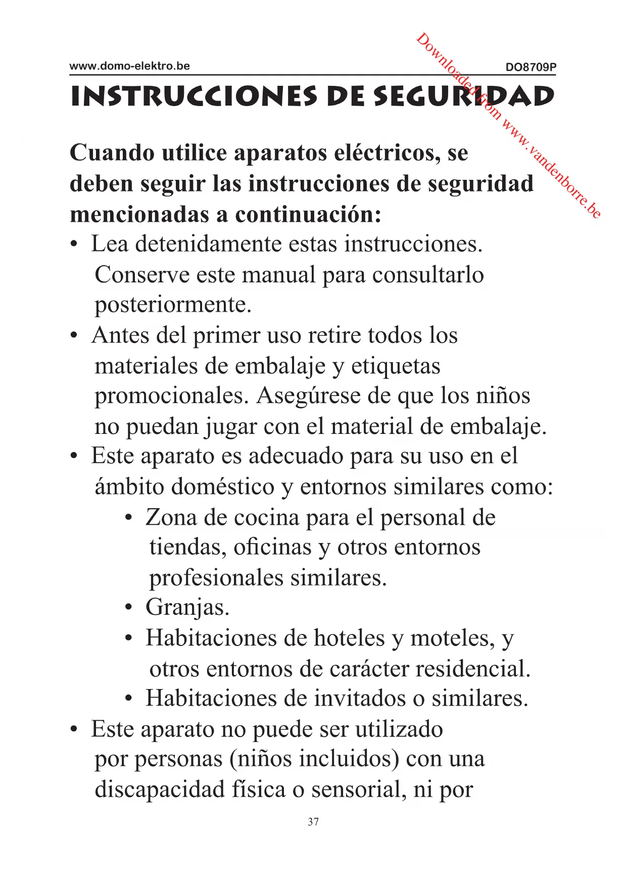 - Este aparato no puede ser utilizado por personas (niños incluidos) con una discapacidad física o sensorial, ni por Downloaded from www.vandenborre.beDO8709P
