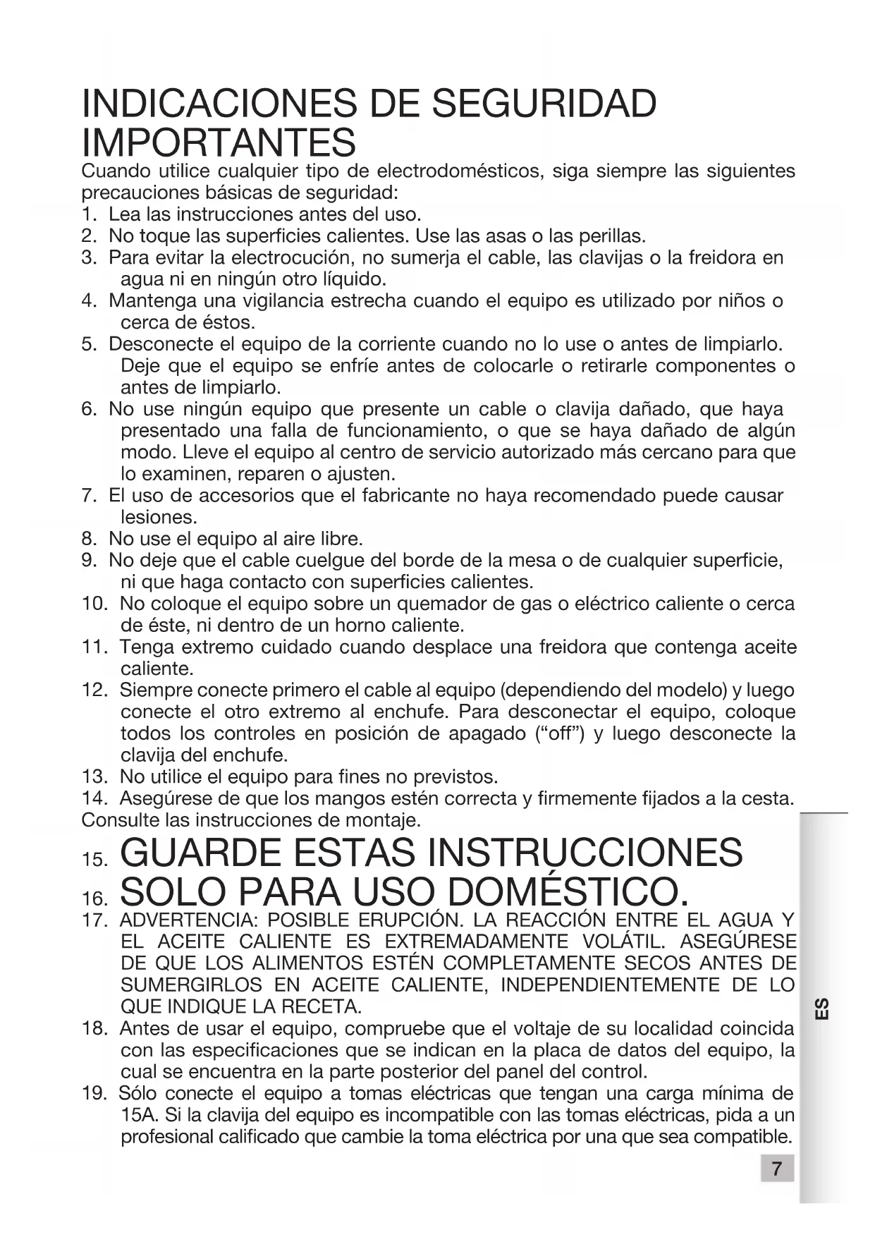 22. No coloque demasiados alimentos en las cestas de freír. Por razones de