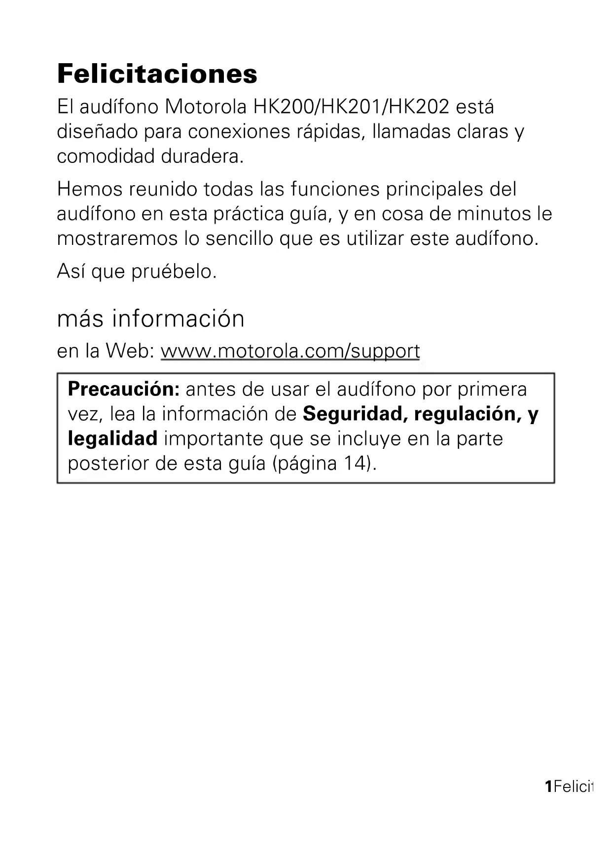 ndicadora en azul fijo.13Soporte Soporte estamos aquí para ayudarlo Si tiene dudas o necesita ayuda, llámenos al 1877MOTOBLU o visítenos en www.motorola.com/Bluetoothsupport