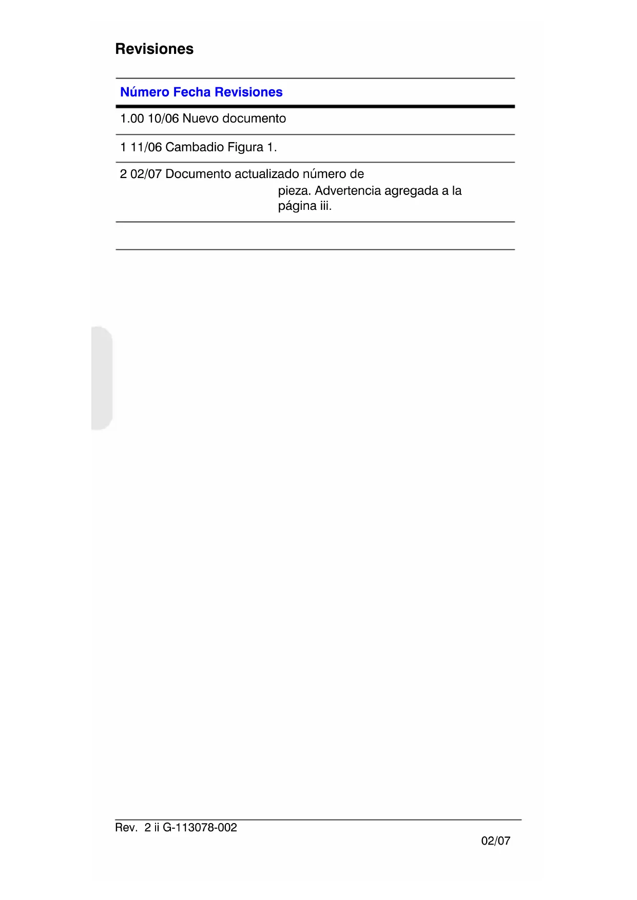 - FUNCIONAMIENTO Y MANTENIMIENTO IMPORTANTES CON ESTA UNIDAD. PRECAUCIÓN EspañolRev. 2 iv G-113078-002 02/07 Declaración de conformidad con las Normas FCC Información dirigida al usuario: Este dispositivo ha sido sometido a pruebas y ha demostrado cumplir con los límites establecidos para un dispositivo digital de clase A. Conforme al Apartado 15 de las Normas FCC, estos límites han sido diseñados para proporcionar una protección razonable frente a las interferencias perjudiciales durante su uso en un entorno comercial. Este equipo genera, utiliza y puede emitir energía de radiofrecuencia y, si no se instala y utiliza acorde al manual de instrucciones, podría provocar interferencias en las comunicaciones por radio. Es probable que el uso de este dispositivo en una zona residencial provoque interferencias perjudiciales. En este caso, el usuario deberá corregir dicha interferencia y asumir los costes. Precaución Cualquier modificación realizada sin la aprobación expresa de la parte responsable del cumplimiento de las normas, podría anular el derecho del usuario a utilizar el equipo. Declaración de conformidad del fabricante El fabricante declara que el equipo suministrado con esta guía cumple con los requisitos básicos de protección, con arreglo a la Directiva 89/336/CEE sobre compatibilidad electromagnética y la Directiva 73/23/CEE sobre baja tensión, conforme a los requisitos de los estándares EN 55013 para emisiones.Rev. 2 G-113078-002 02/07 Español Contenido Introducción p. 1