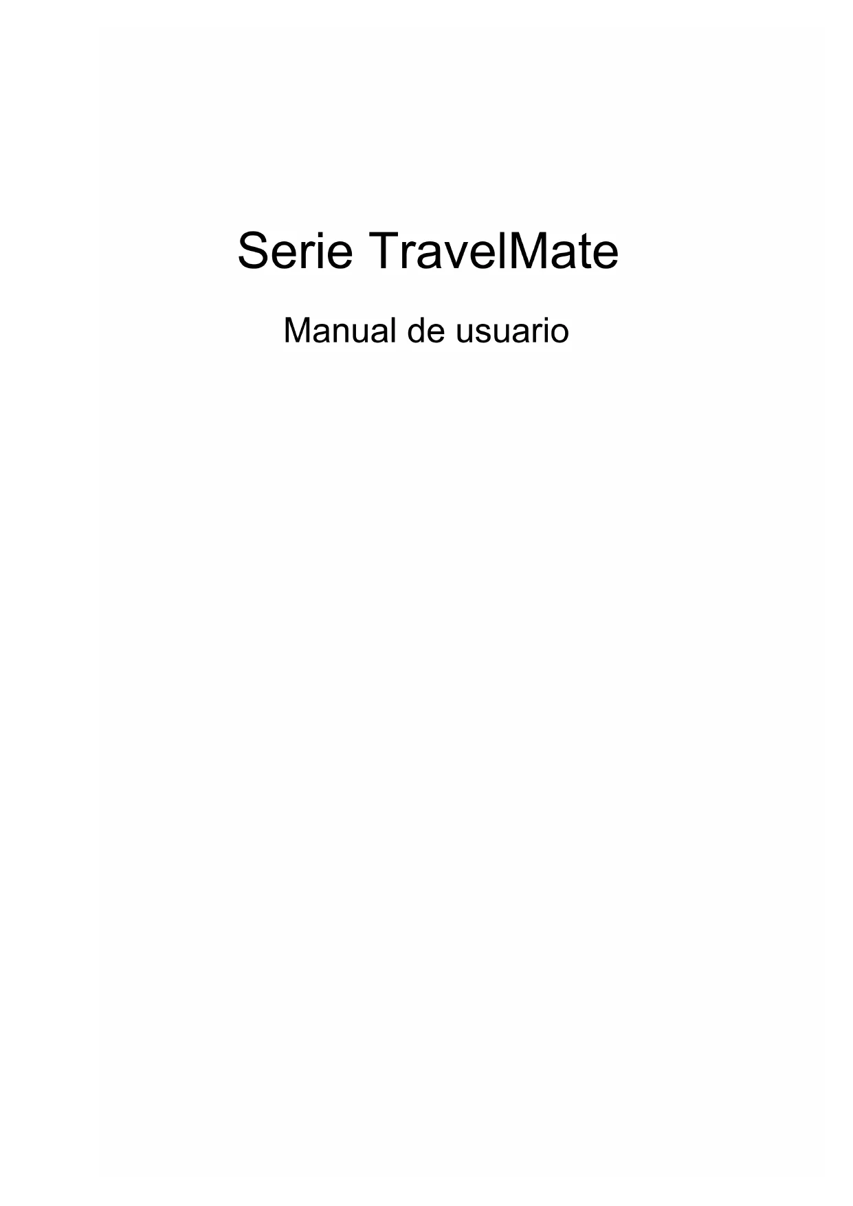 ANADA – DISPOSITIVI DI COMUNICAZIONE RADIO A BASSA POTENZA ESENTI DA LICENZA (RSS-210) Esposizione delle persone ai campi RF (RSS-102) Il computer impiega antenne integrali a basso guadagno che non emettono campi RF in eccesso rispetto ai limiti stabiliti da Health Canada per la popolazione in genere; consultare il Codice per la Sicurezza n. 6, accessibile nel sito Web di Health Canada all’indirizzo www.hc-sc.gc.ca/rpb. Questo dispositivo è conforme con il RSS210 Industry Canada. Questo apparato digitale di Classe B è conforme alla norma canadese ICES-003, Edizione 4, e RSS-210, No 4 (dic 2000) e No 5 (nov 2001).72 Italiano "Per evitare interferenze radio a servizi in abbonamento, questo dispositivo deve essere utilizzato in interno e lontano da finestre per avere la massima protezione. Le apparecchiature (o le relative antenne di trasmissione) installate all'aperto sono soggette a licenza." Cet appareil numérique de la classe B est conforme à la norme NMB-003, No. 4, et CNR-210, No 4 (Dec 2000) et No 5 (Nov 2001). « Pour empêcher que cet appareil cause du brouillage au service faisant l'objet d'une licence, il doit être utilisé a l'intérieur et devrait être placé loin des fenêtres afin de fournir un écran de blindage maximal. Si le matériel (ou son antenne d'émission) est installé à l'extérieur, il doit faire l'objet d'une licence. Attenzione: Quando si utilizza la LAN wireless IEEE 802.11a, l’impiego di questo dispositivo è limitato per uso in interni poiché opera nel campo di frequenza che va da 5,15 a 5,25 GHz. Industry Canada esige che questo prodotto, il cui campo operativo va da 5,15 a 5,25 GHz, sia utilizzato in interni per evitare potenziali interferenze dannose a sistemi satellitari che utilizzano gli stessi canali. Un radar ad alta potenza è assegnato come utente primario delle bande da 5,25 a 5,35 GHz e da 5,65 a 5,85 GHz. Queste stazioni radar possono provocare interferenze al dispositivo e/o danneggiarlo. Il guadagno dell'antenna massimo consentito per l'utilizzo con questo dispositivo è 6 dBi per soddisfare il limite E.I.R.P per l'intervallo di frequenza da 5,25 a 5,35 e da 5,725 a 5,85 GHz nel funzionamento point-to-point. Ver.: 01.01.05Serie TravelMate Manual de usuarioNúmero de modelo: ____________________ Número de serie: ______________________ Fecha de compra: _____________________ Lugar de compra: _____________________ La información de esta publicación puede estar sujeta a cambios periódicos sin obligación alguna de notificar dichas revisiones o modificaciones. Dichas modificaciones se incorporarán a las nuevas ediciones de la presente guía o documentos y publicaciones complementarios. Esta empresa no hace promesas ni concede garantías, ya sean explícitas o implícitas, sobre el contenido del presente producto y declina expresamente toda garantía implícita de comerciabilidad o idoneidad para un fin determinado. Anote el número de modelo, el número de serie y la fecha y lugar de compra en el espacio provisto a continuación. Los números de serie y modelo figuran en la etiqueta pegada en el ordenador. Toda correspondencia relativa a su unidad deberá incluir los números de serie y modelo, así como la información de compra. Ninguna parte de esta publicación puede ser reproducida, almacenada en sistemas de recuperación o transmitida por ningún medio, ya sea electrónico, mecánico, fotográfico o de otro tipo, sin consentimiento por escrito de Acer Incorporated. © 2012 Reservados todos los derechos. Manual de usuario de la serie TravelMate Esta revisión: 09/2012iii Español Información para su seguridad y comodidad Instrucciones de seguridad Lea atentamente estas instrucciones. Guarde este documento para consultarlo en el futuro. Siga los avisos e instrucciones marcados en el producto. Apagado del producto antes de limpiarlo Desconecte el producto de la toma de corriente antes de limpiarlo. No utilice productos de limpieza líquidos ni aerosoles. Utilice unpaño húmedo para la limpieza. PRECAUCIÓN con el enchufe como dispositivo desconectado Preste atención a las siguientes indicaciones cuando conecte o desconecte la energía a la unidad de suministro eléctrico: Instale la unidad de suministro eléctrico antes de conectar el cable de alimentación a la salida de corriente alterna, CA. Desenchufe el cable de alimentación antes de retirar la unidad de suministro eléctrico del ordenador. Si el sistema dispone de múltiples fuentes de alimentación, desconecte la energía del sistema desenchufando todos los cables de alimentación de los suministros de corriente. PRECAUCIÓN en Accesibilidad Asegúrese de que la salida de corriente a la que enchufa el cable de alimentación es fácilmente accesible y que se encuentra lo más próxima posible al operador del equipo. Cuando necesite desconectar la corriente del equipo, asegúrese de desenchufar el cable de alimentación de la salida de corriente. ¡PRECAUCIÓN! Para la(s) tarjeta(s) ficticias suministradas (sólo en ciertos modelos) Su ordenador se entrega con tarjetas ficticias de plástico instaladas en las ranuras para tarjeta. Estas tarjetas protegen las ranuras no utilizadas frente a la entrada de polvo, objetos de metal y otras partículas. Guarde las tarjetas para que se utilicen cuando no haya ninguna en las ranuras.iv Español PRECAUCIÓN para escuchar música Para protegerse el oído, siga estas instrucciones.