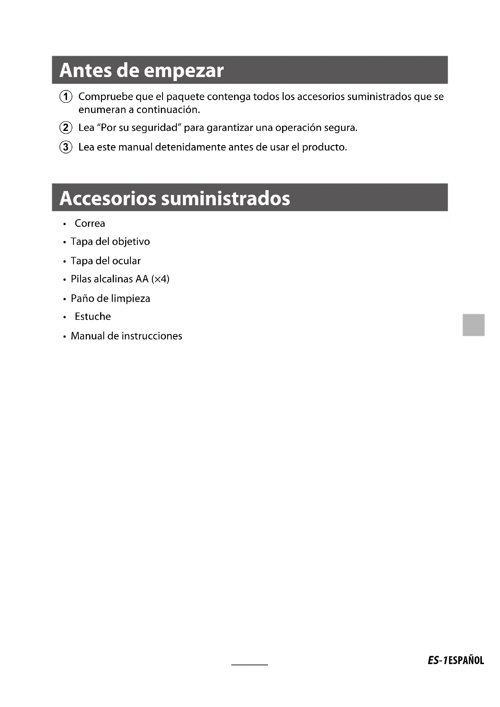 Lea este manual detenidamente antes de usar el producto. Accesorios suministrados