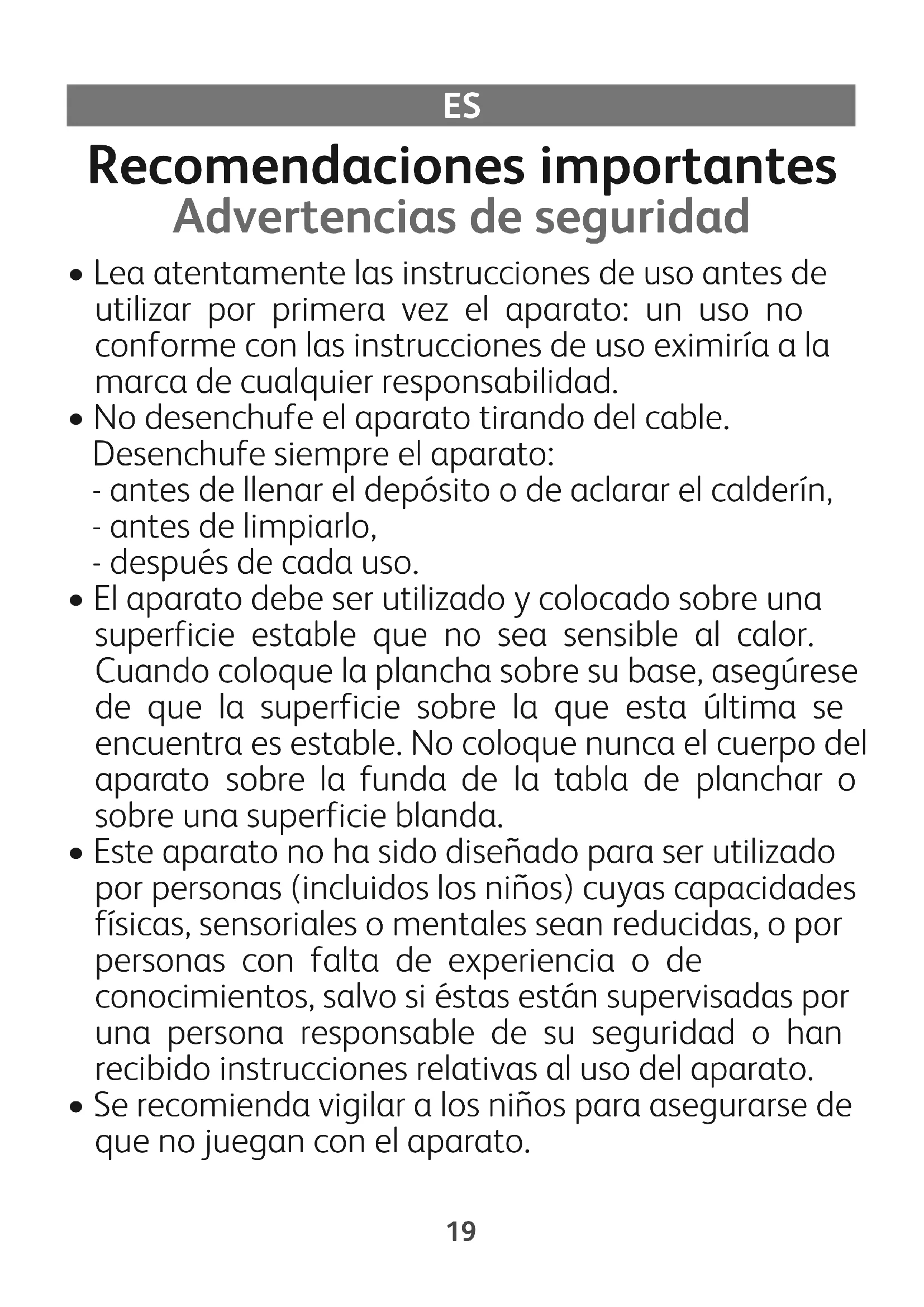 - Su central de vapor es un aparato eléctrico, por lo que debe utilizarse en condiciones normales de uso. Este aparato está pensado únicamente para su uso doméstico.