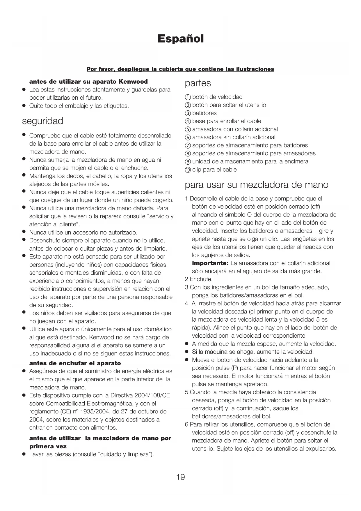 Utilice este aparato únicamente para el uso doméstico al que está destinado. Kenwood no se hará cargo de responsabilidad alguna si el aparato se somete a un uso inadecuado o si no se siguen estas instrucciones. antes de enchufar el aparato