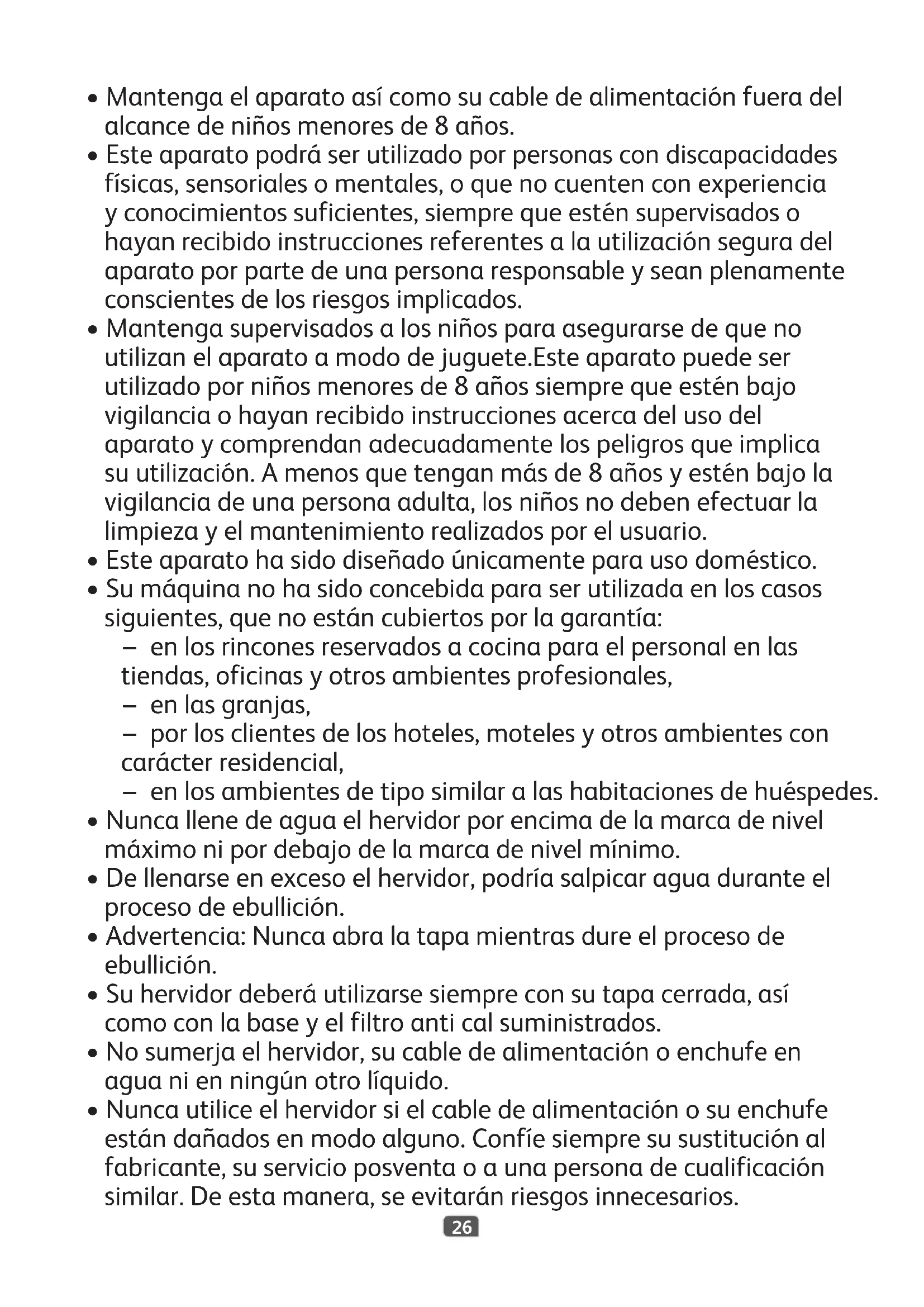 - Nuncautiliceelhervidorsielcabledealimentaciónosuenchufe estándañadosenmodoalguno.Confíesiempresusustituciónal fabricante,suservicioposventaoaunapersonadecualificación similar.Deestamanera,seevitaránriesgosinnecesarios.27