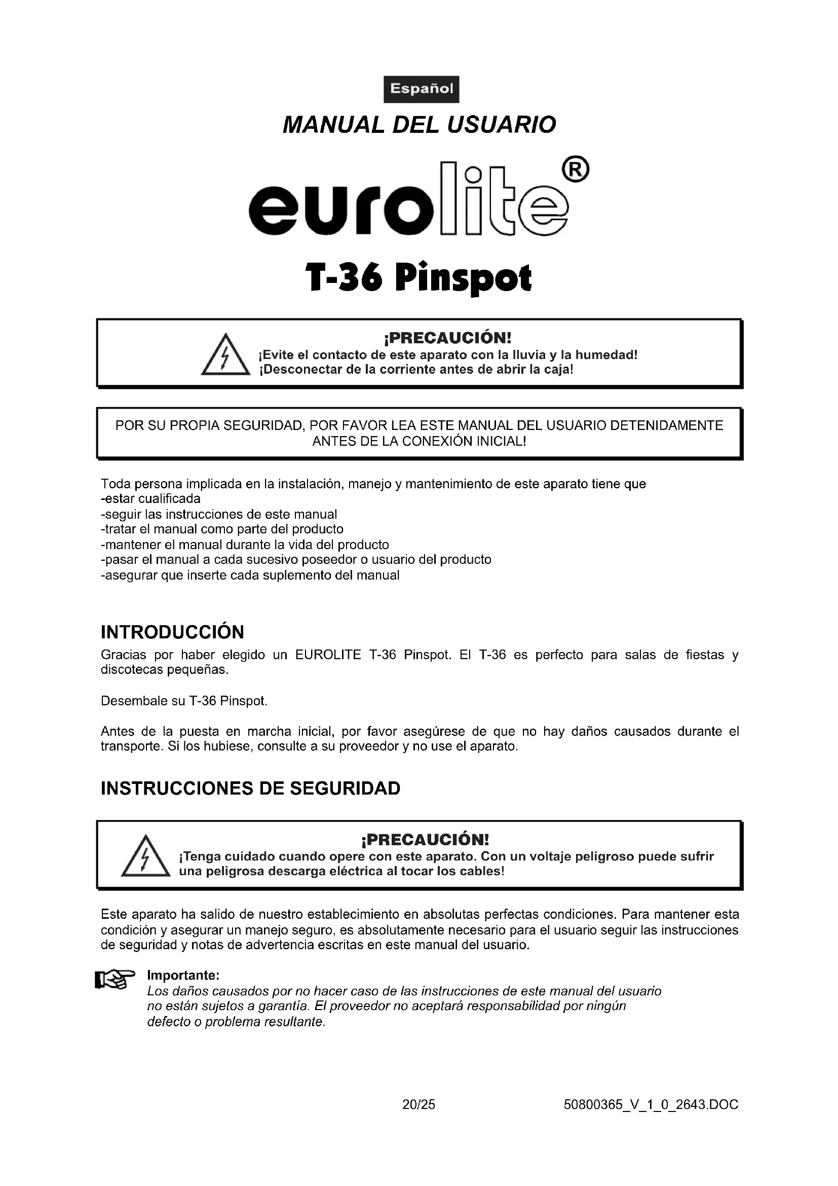 MANUAL DE USUARIO T36 Pinspot Eurolite