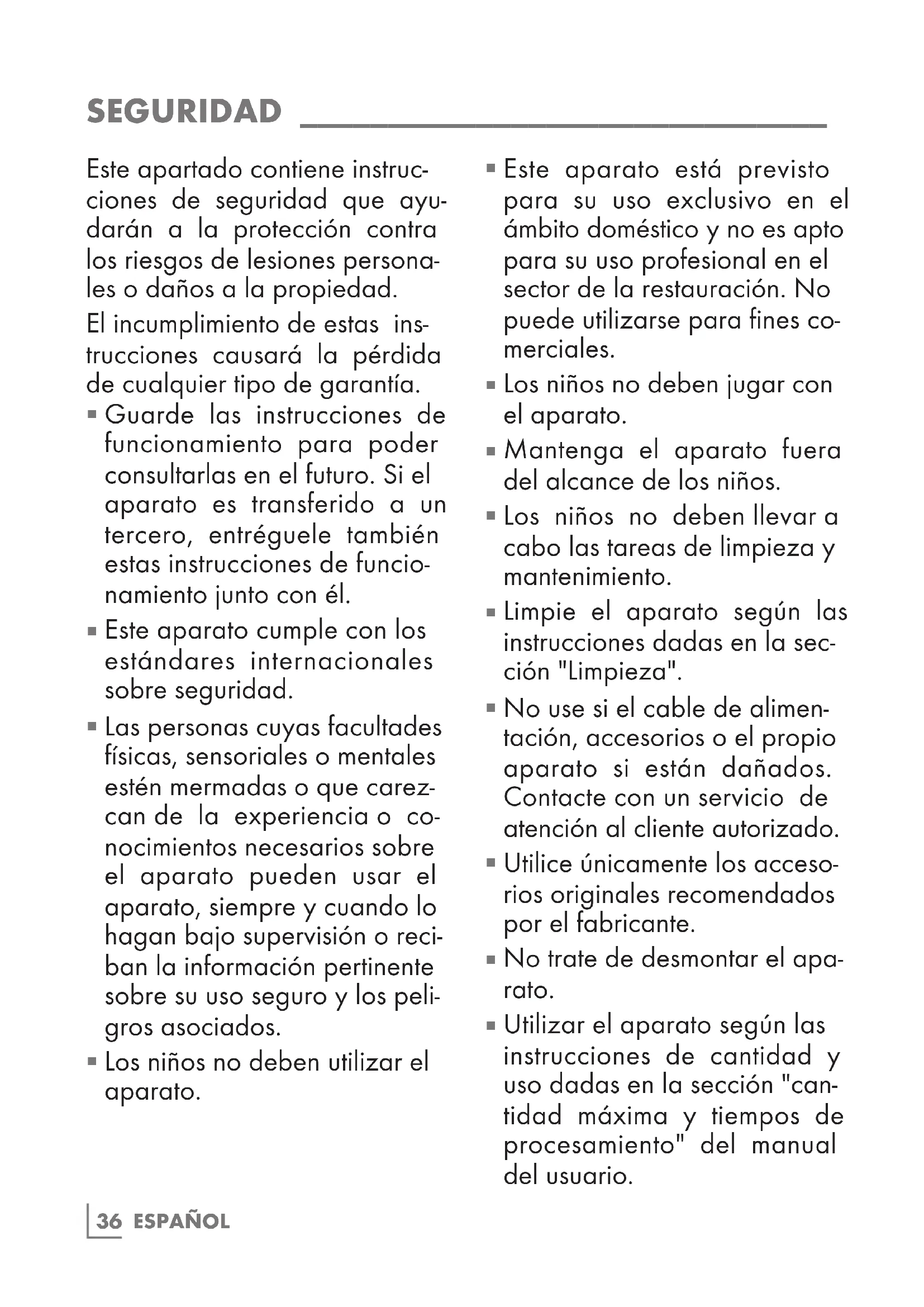 Este aparato está previsto para su uso exclusivo en el ámbito doméstico y no es apto para su uso profesional en el sector de la restauración. No puede utilizarse para fines co- merciales.