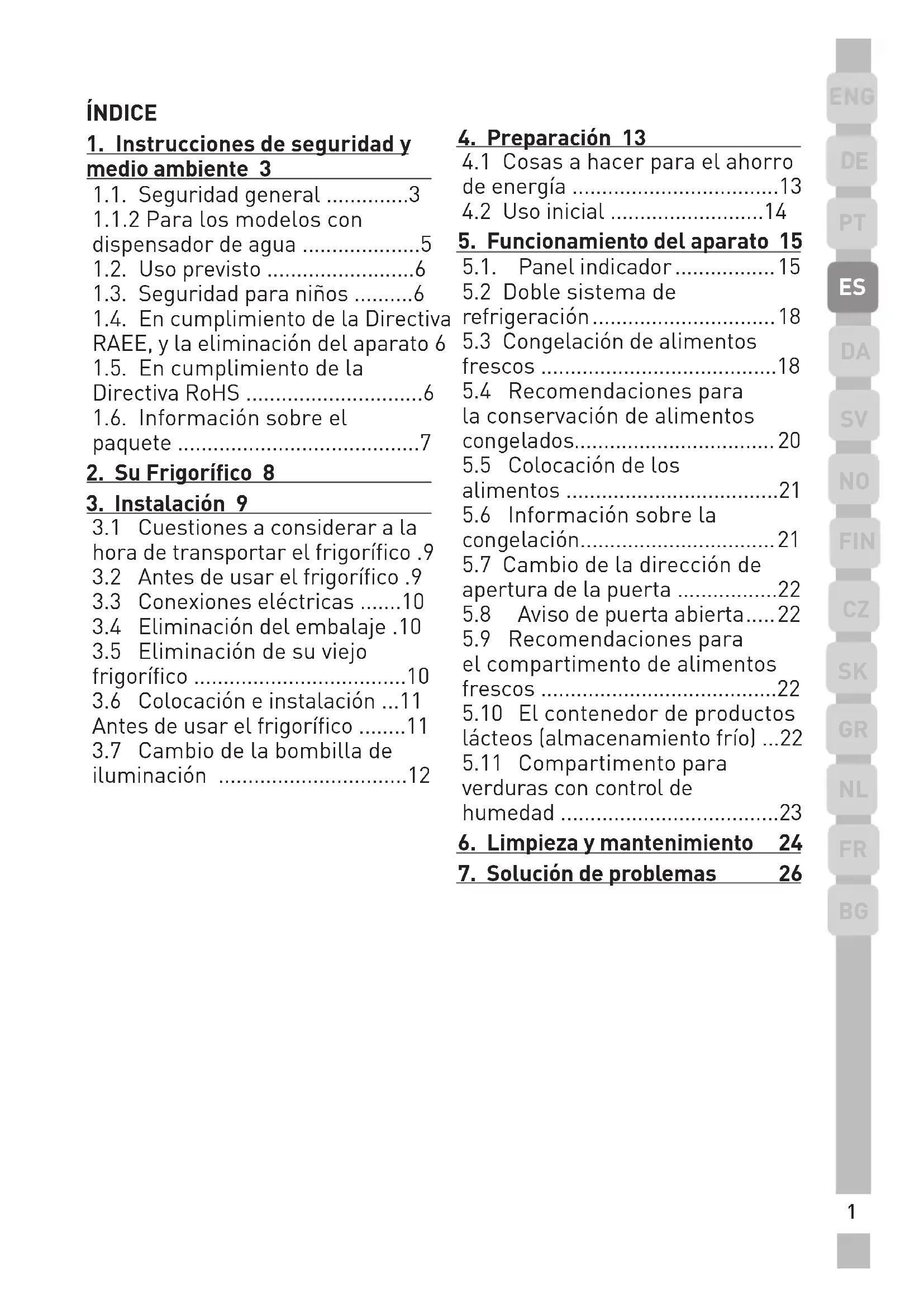 Antes de usar el frigorífico ........11