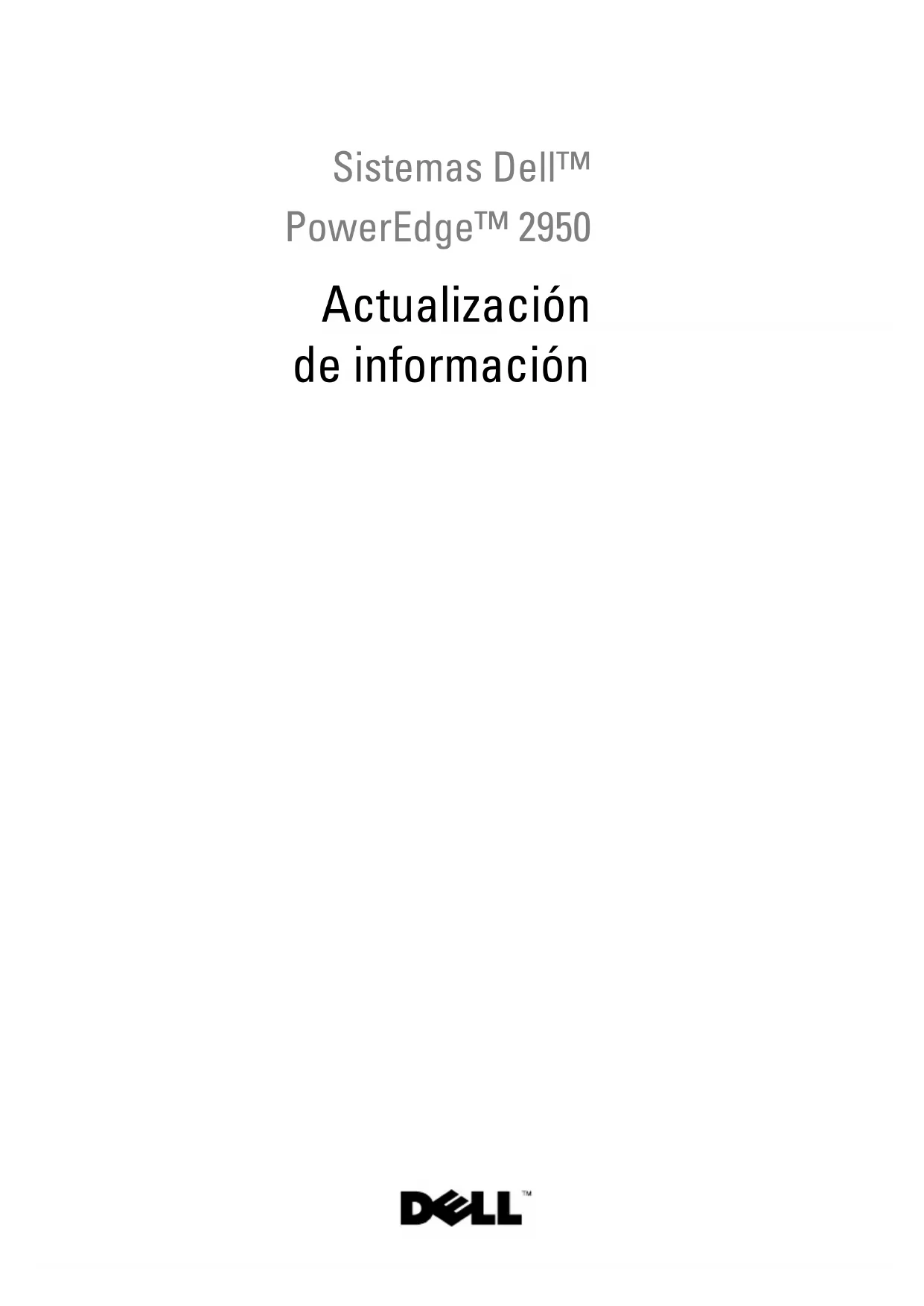 La información contenida en este documento puede modificarse sin previo aviso. © 2006–2009 Dell Inc. Todos los derechos reservados. Queda estrictamente prohibida la reproducción de este material en cualquier forma sin la autorización por escrito de Dell Inc. Marcas comerciales utilizadas en este texto: Dell, el logotipo de DELL y PowerEdge son marcas comerciales de Dell Inc.; Intel y Xeon son marcas comerciales registradas de Intel Corporation; Microsoft, Windows y Windows Server son marcas comerciales o marcas comerciales registradas de Microsoft Corporation en los Estados Unidos o en otros países; Red Hat y Red Hat Enterprise Linux son marcas comerciales registradas de Red Hat, Inc.; SUSE es una marca comercial registrada de Novell Inc. Otras marcas y otros nombres comerciales pueden utilizarse en este documento para hacer referencia a las entidades que los poseen o a sus productos. Dell Inc. renuncia a cualquier interés sobre la propiedad de marcas y nombres comerciales que no sean los suyos. Octubre de 2009 N/P DD259 Rev. A07Contenido 161 Contenido Configuraciones de memoria no óptimas . . . . . . . . 163 PowerEdge 2950 III: Nuevas funciones del sistema