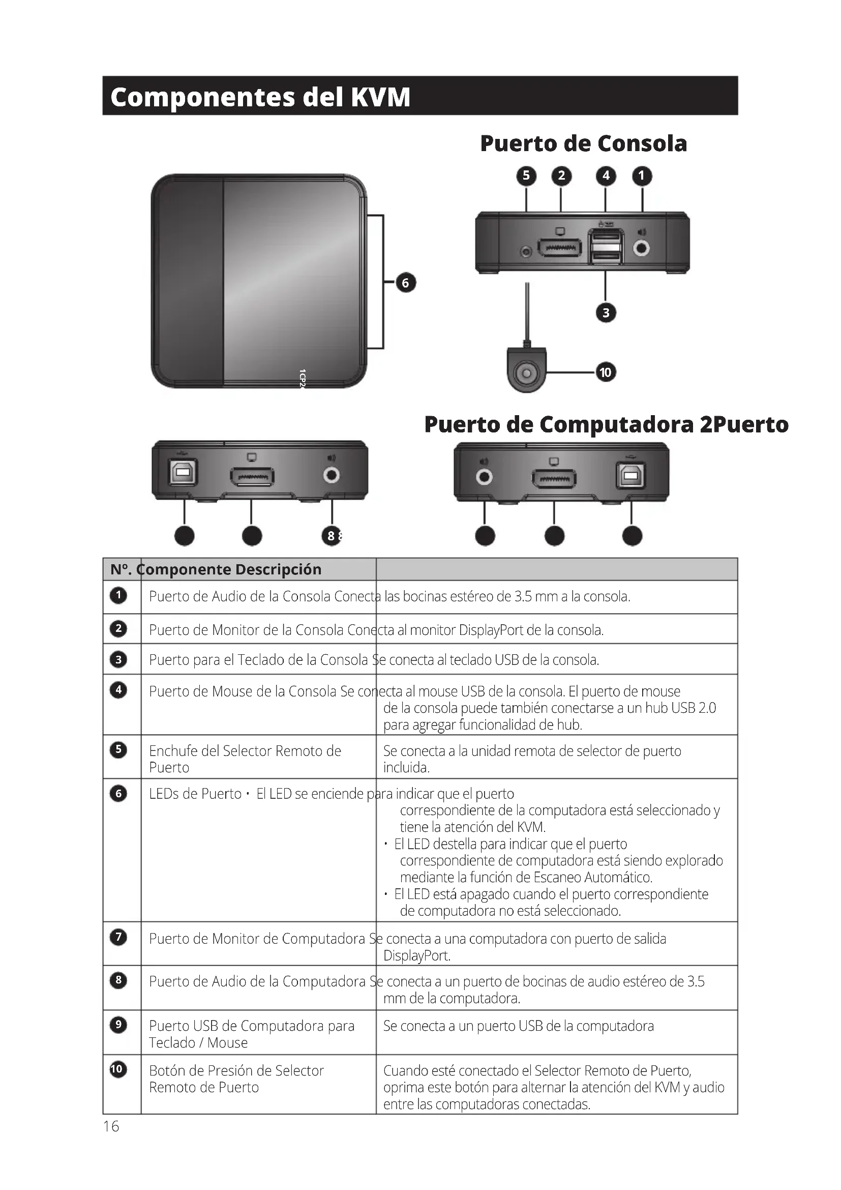 - Permite que el KVM y el Audio puedan activarse independientemente uno del otro—por ejemplo, puede acceder a una computadora mientras que al mismo tiempo escuchar audio desde otra computadora