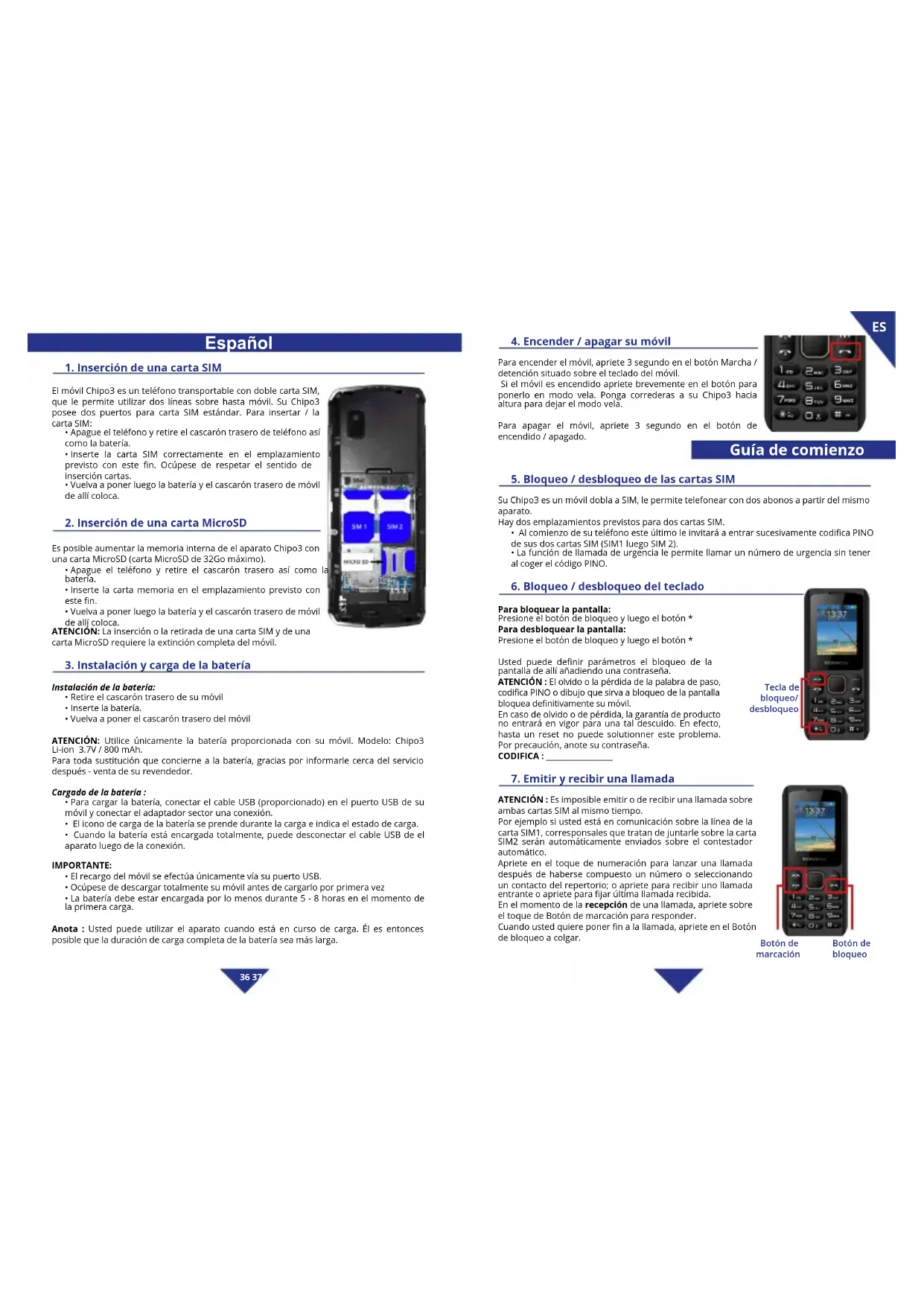 Konrow le agradece De haber escogido el móvil Chipo3. Usted encontrará en este guía todas las informaciones relativas a la utilización de este teléfono móvil. ADVERTENCIA: