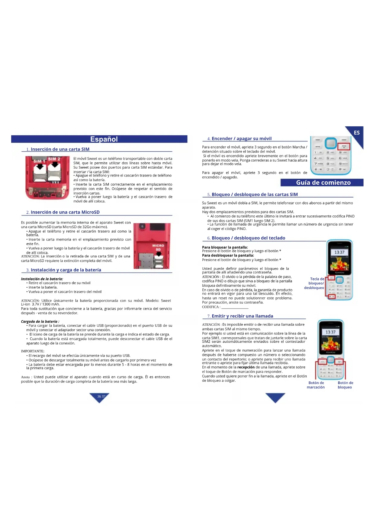 Konrow le agradece De haber escogido el móvil Sweet. Usted encontrará en este guía todas las informaciones relativas a la utilización de este teléfono móvil. ADVERTENCIA:
