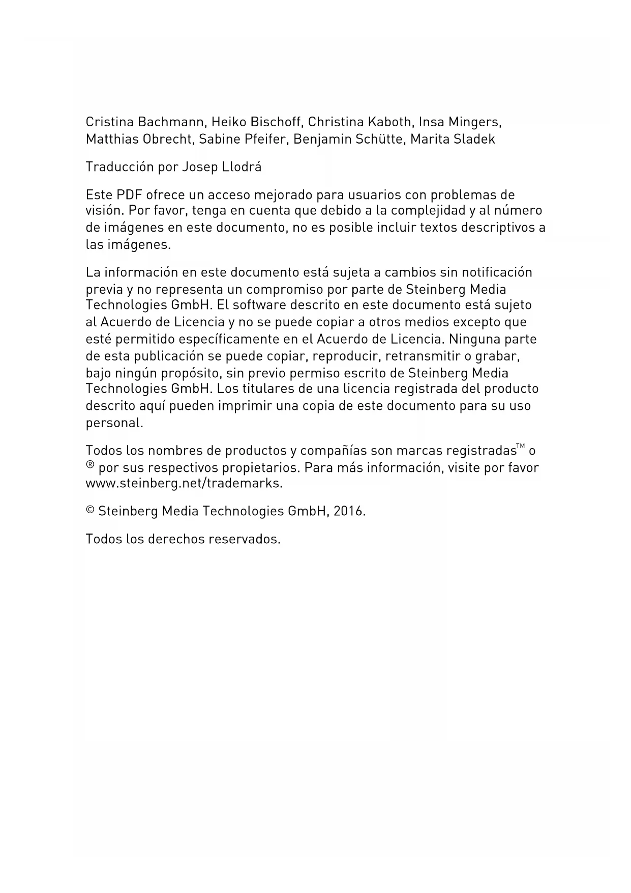 por sus respectivos propietarios. Para más información, visite por favor www.steinberg.net/trademarks.