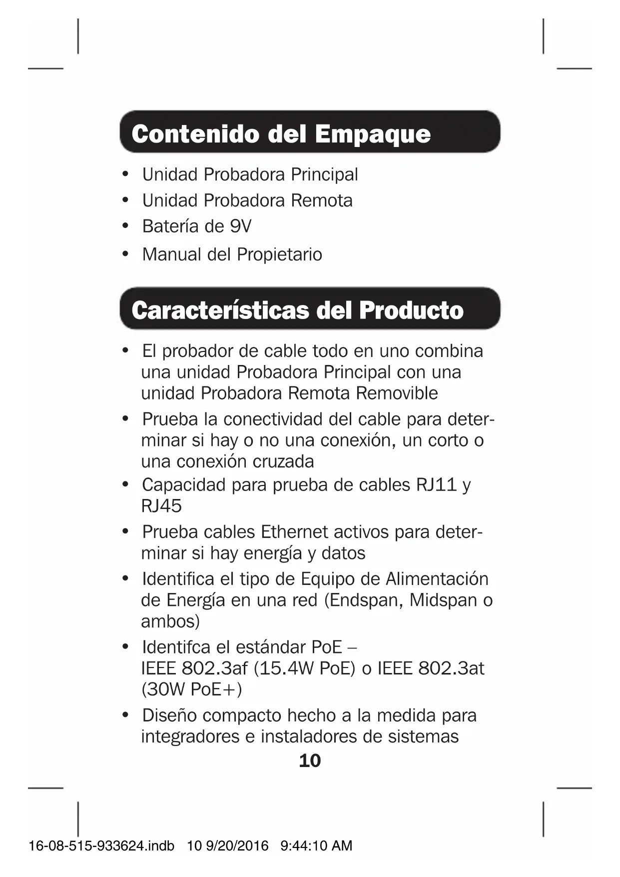 - Diseño compacto hecho a la medida para integradores e instaladores de sistemas 16-08-515-933624.indb 10 9/20/2016 9:44:10 AM11 Prueba de Continuidad Notas: