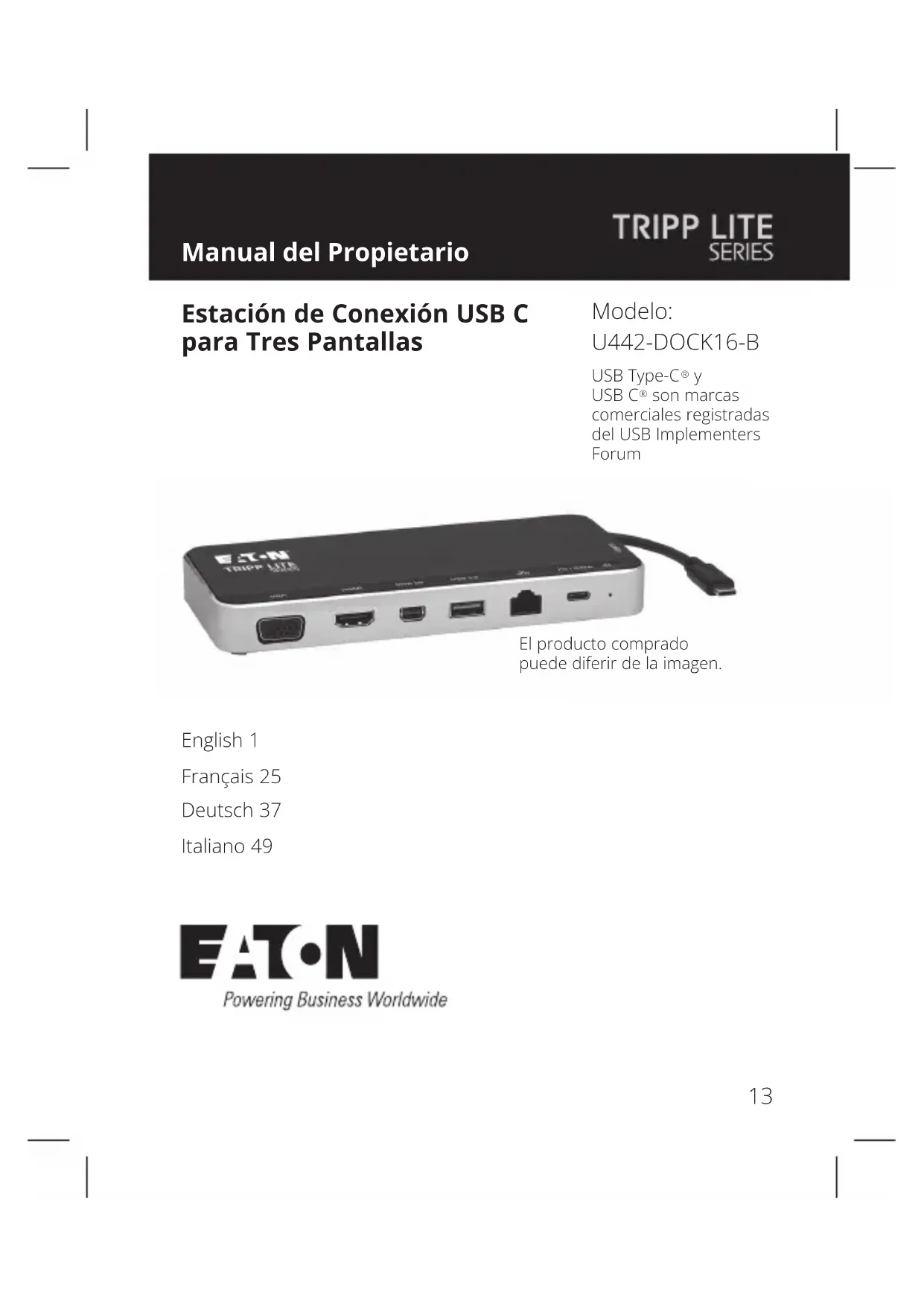 MANUAL DE USUARIO U442DOCK16B Tripp Lite