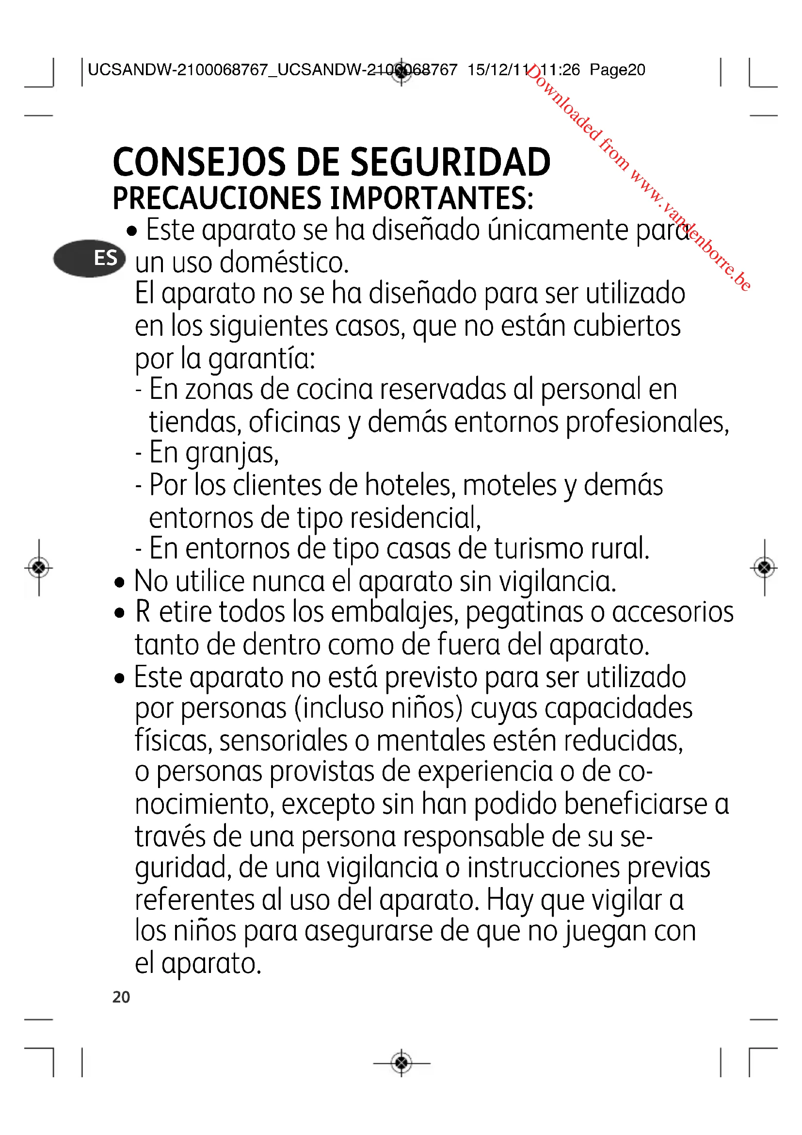 - Este electrodoméstico pueden utilizarlo niños a partir de 8 años de edad y personas con capacidades físicas, sensoriales o mentales reducidas o desprovistas de experiencia o de conocimiento, siempre que dispongan de supervisión o hayan recibido instrucciones sobre el uso seguro del electrodoméstico y entiendan los riesgos que implica. Los niños no deben jugar con el electrodoméstico. Los niños no deben ocuparse de la limpieza y el mantenimiento de usuario del electrodoméstico, salvo que sean mayores de 8 años y estén supervisados por un adulto.