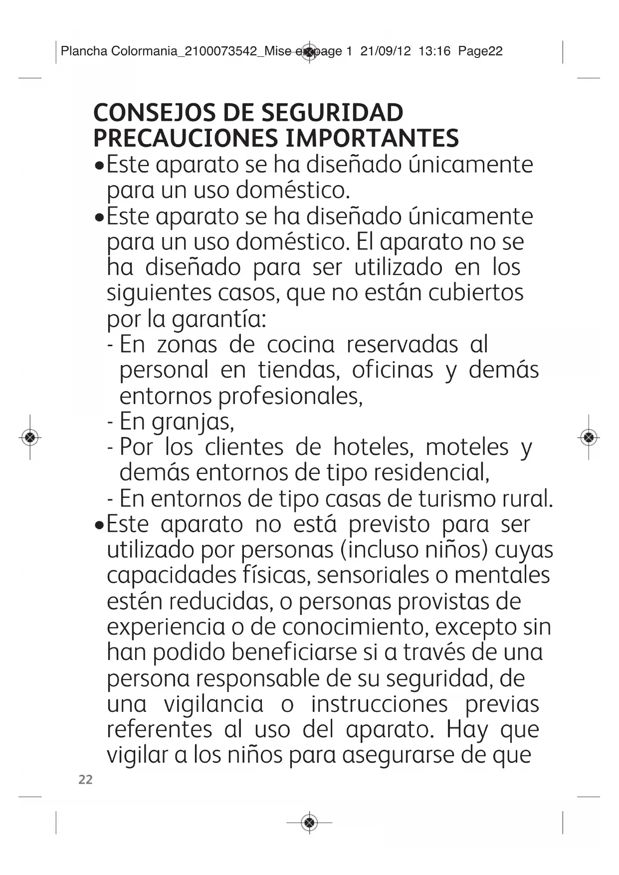 Plancha Colormania_2100073542_Mise en page 1 21/09/12 13:16 Page24• La toma móvil del conector debe ser retirada antes de la limpieza del aparato y el conector debe secarse antes de utilizar de nuevo el aparato.