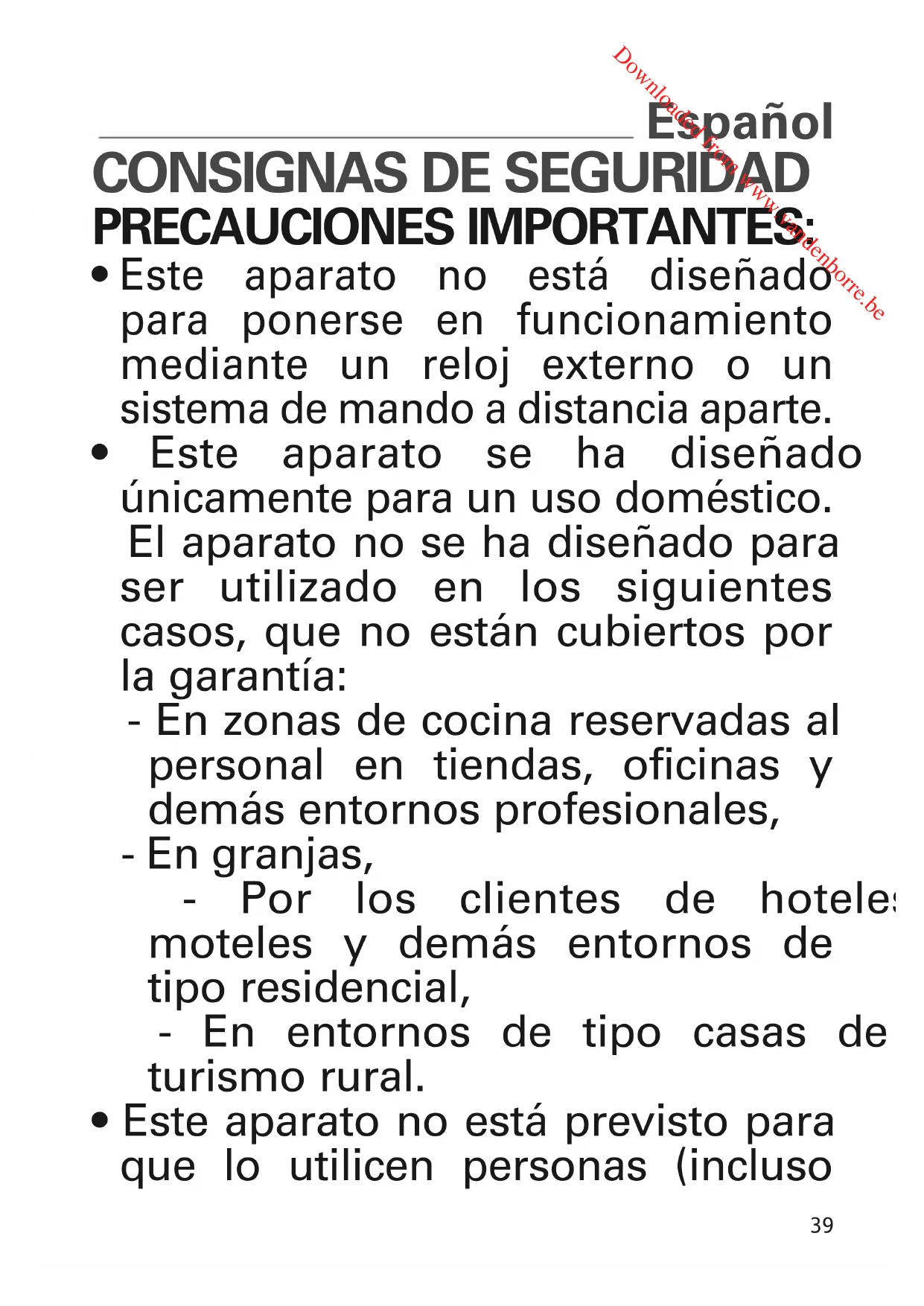 ToasterNC00113269_- 12/05/12 09:13 Page39 Downloaded from www.vandenborre.beniños) cuya capacidad física, sensorial o mental esté disminuida, o personas sin experiencia o conocimientos, excepto si pueden recibir a través de otra persona responsable de su seguridad, una vigilancia adecuada o instrucciones previas relativas a la utilización del aparato.