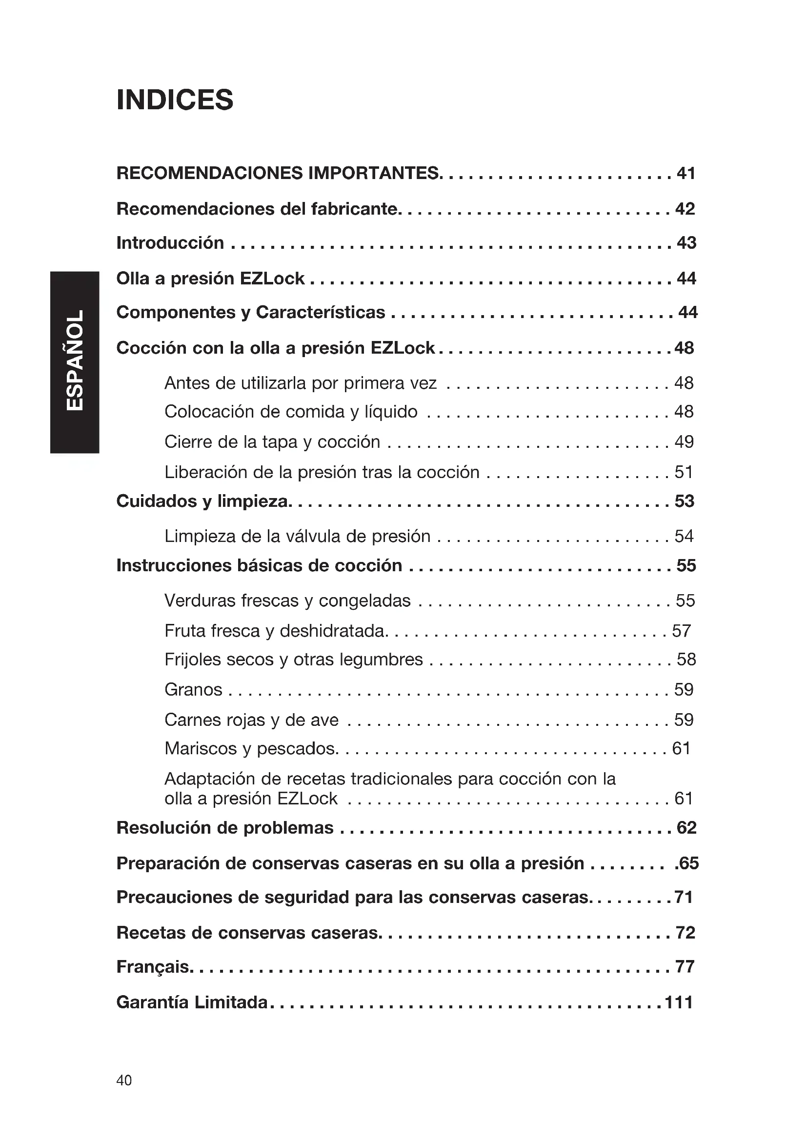- ESPAÑOL INDICES RECOMENDACIONES IMPORTANTES p. 41