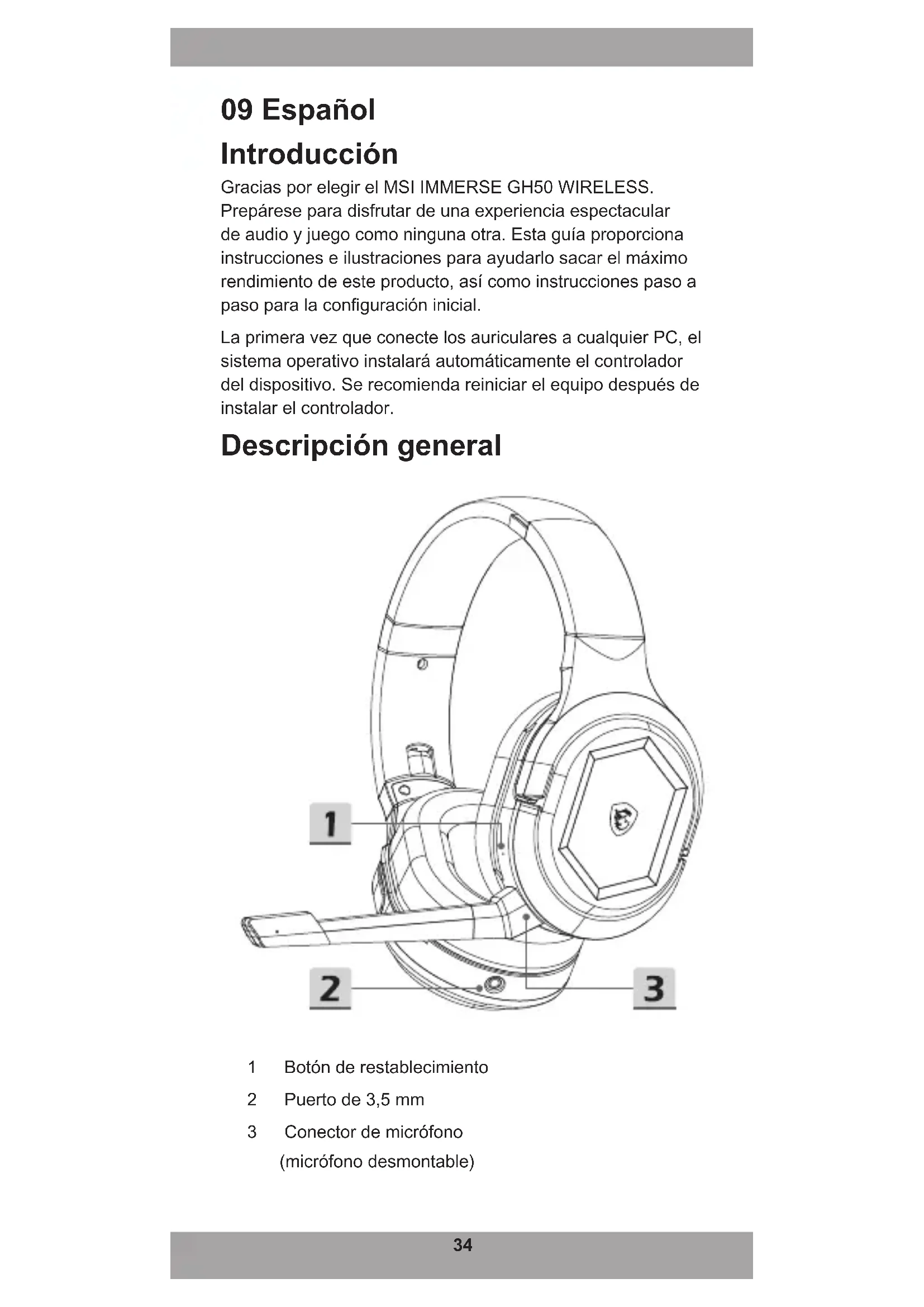 Immerse GH50 - Casque MSI - Manual de uso y guía de instrucciones gratis