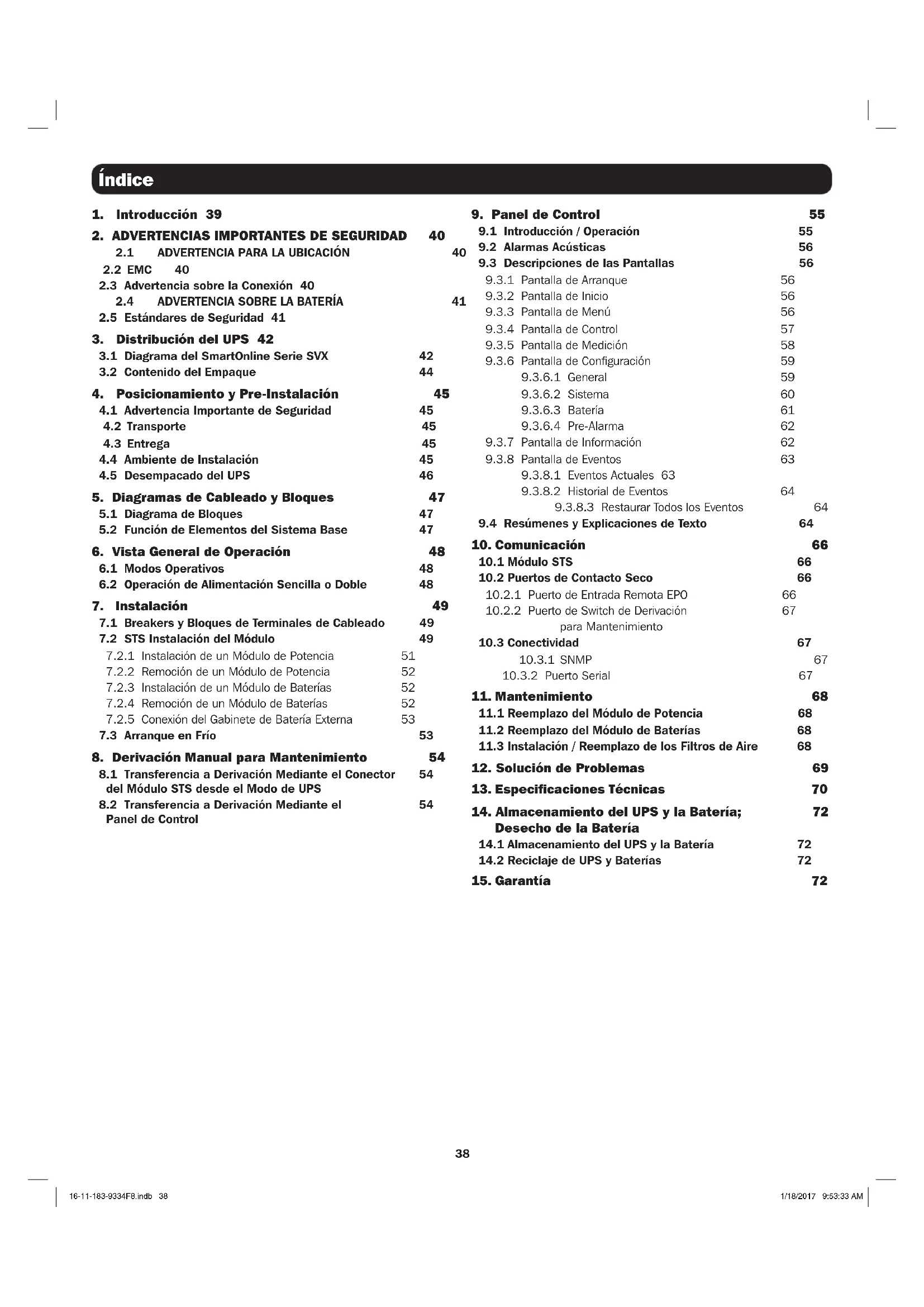 14.1 Almacenamiento del UPS y la Batería 72