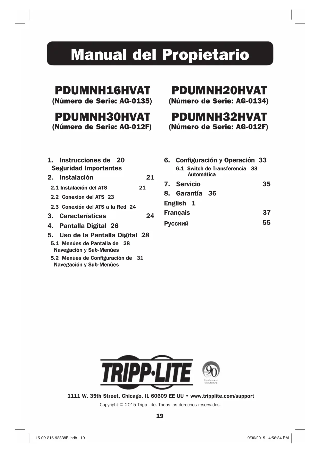 MANUAL DE USUARIO PDUMNH16HVAT Tripp Lite