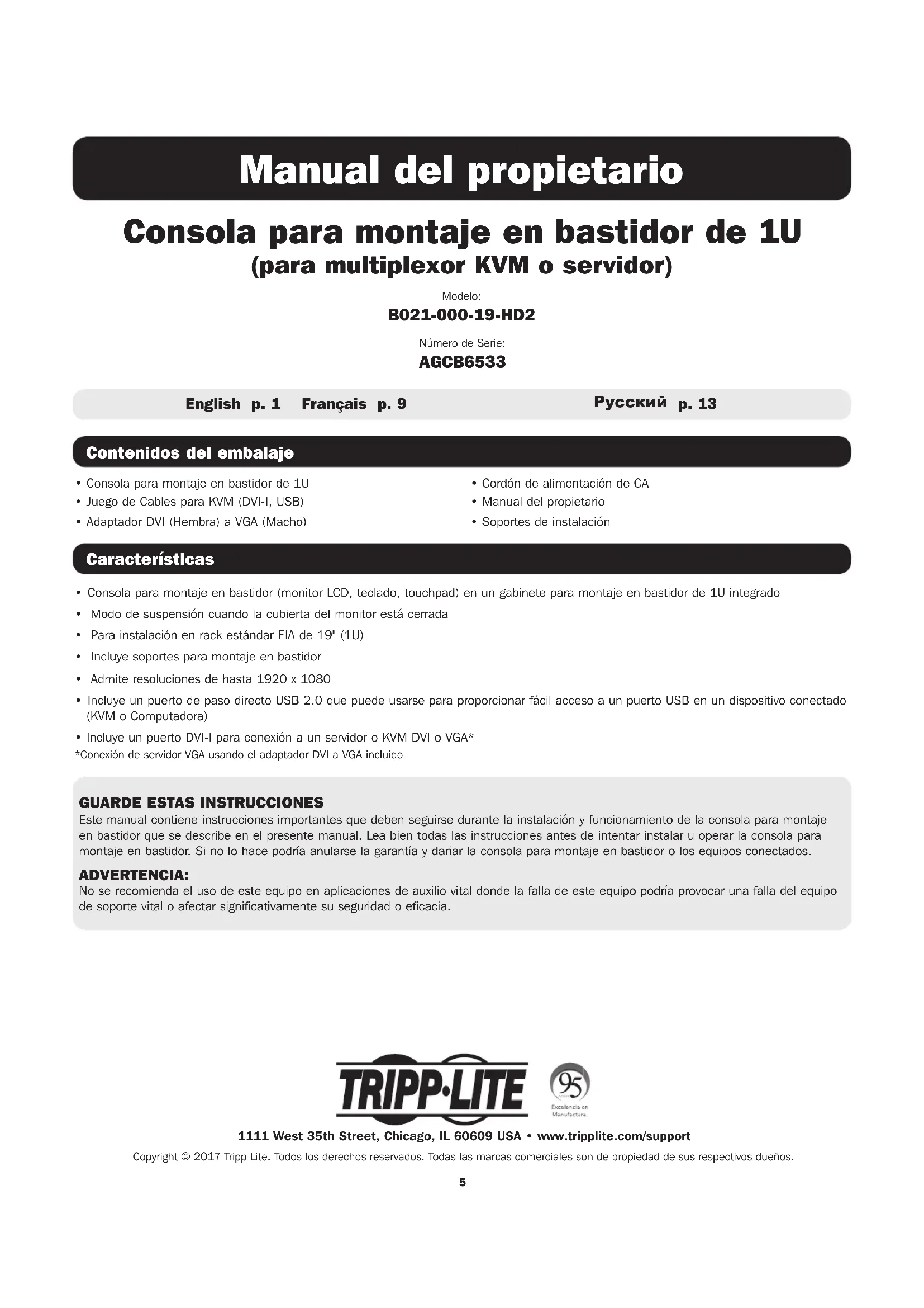 MANUAL DE USUARIO B02100019HD2 Tripp Lite