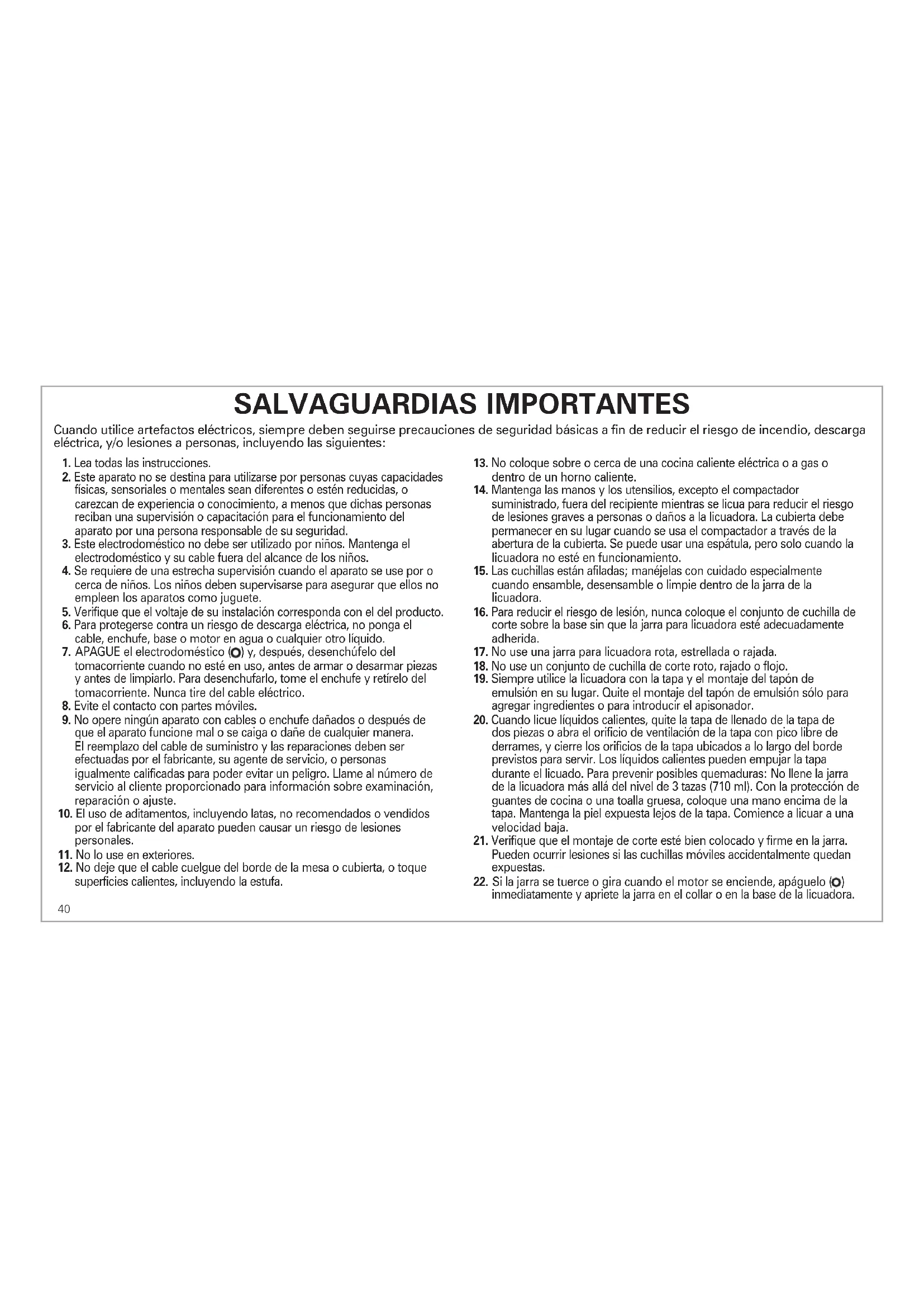 23. No deje sin atención la licuadora mientras esté funcionando.