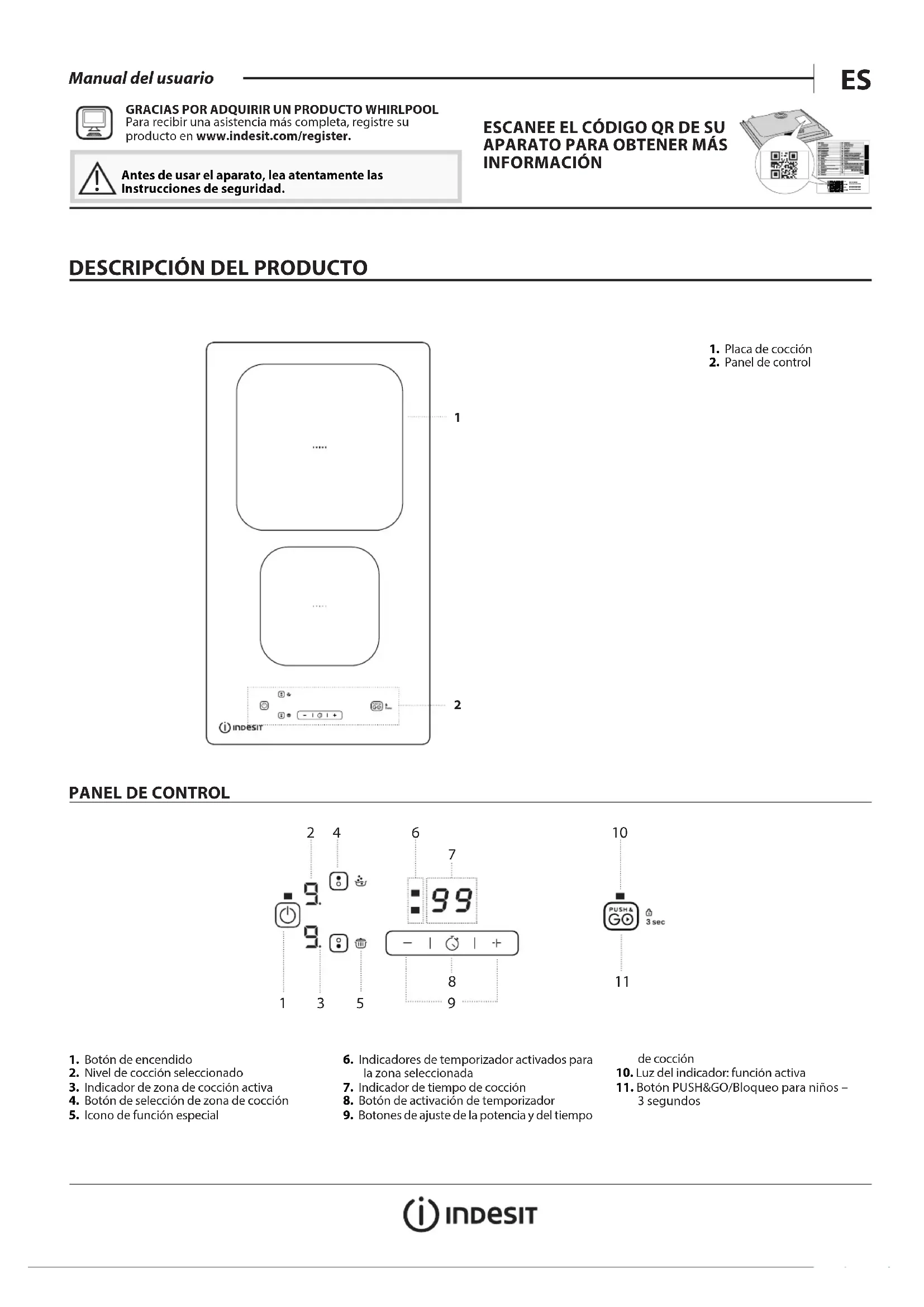 GRACIAS POR ADQUIRIR UN PRODUCTO WHIRLPOOLPara recibir una asistencia más completa, registre su producto en www . indesit . com / register. ESCANEE EL CÓDIGO QR DE SU