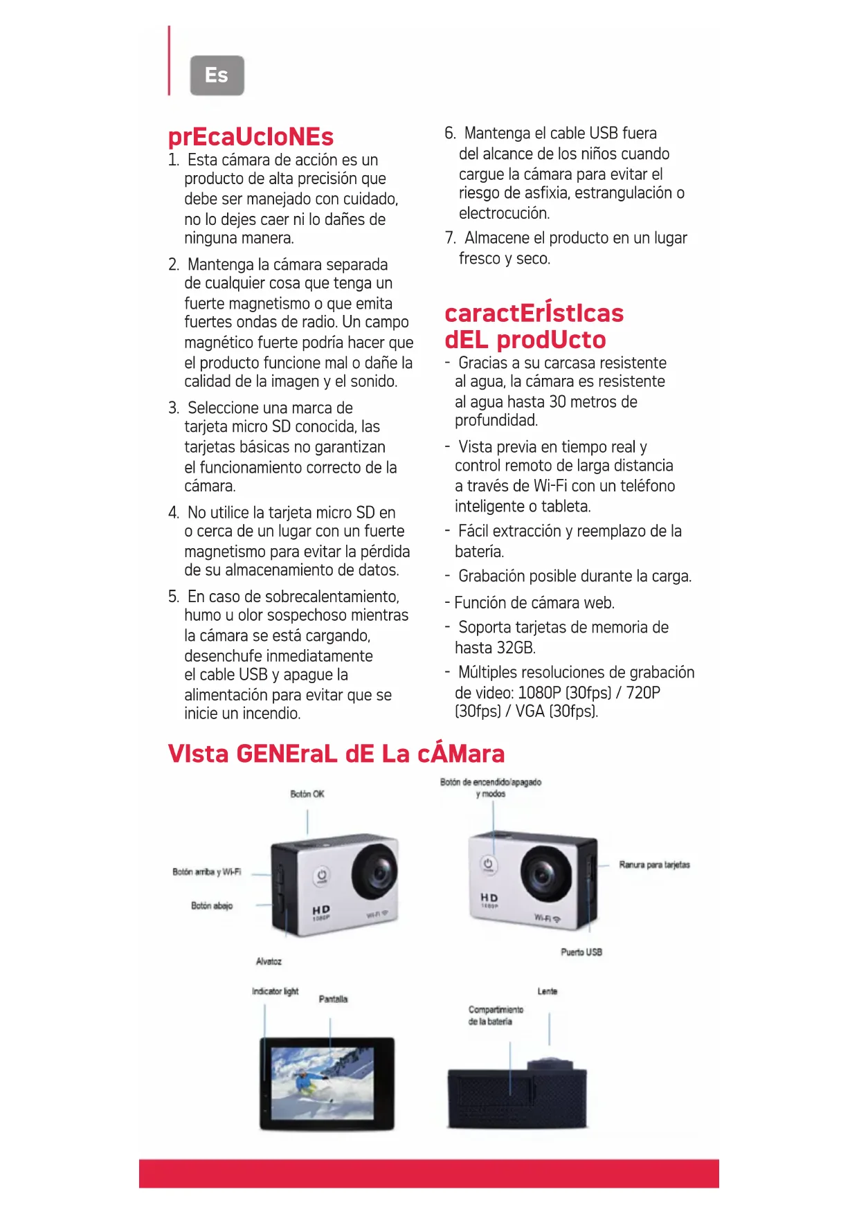 1.Estaámara de action es un producto de alta precision que debe ser manejado con cuidado, no lo dejes caer ni lo dañes de ninguna manera.